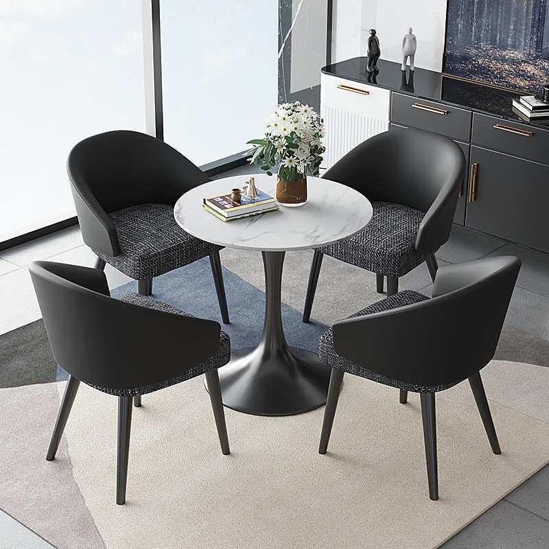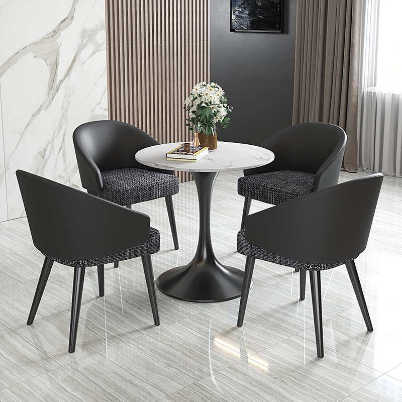 意式轻奢皮布餐椅现代简约家具饭桌椅子酒店餐厅咖啡厅休闲靠背椅
