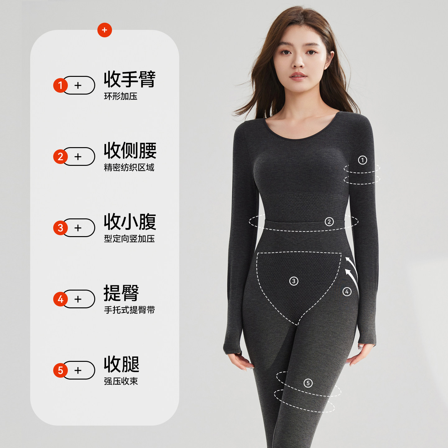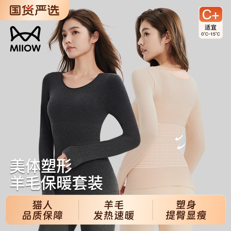 猫人保暖内衣女羊毛发热秋衣秋裤套装美体修2025新款冬季打底塑身
