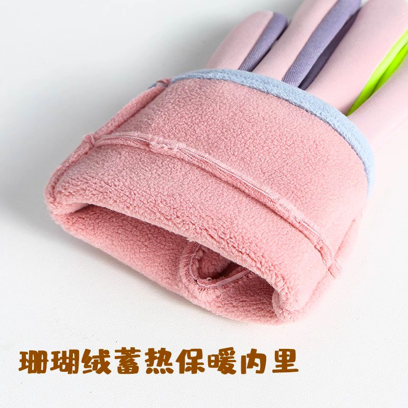 手套女冬季可爱加绒加厚保暖儿童2024新款学生防寒触屏露指男手套