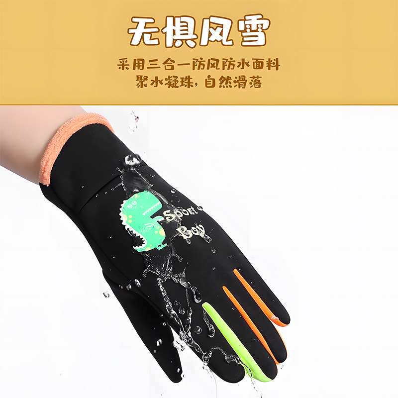 儿童手套秋冬季加绒保暖小学生男童女孩加厚骑车防风防水户外骑行