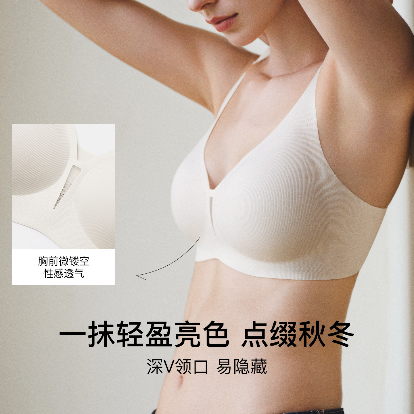 ubras无尺码深V无痕通勤透气聚拢无钢圈舒适内衣女7A抗菌文胸