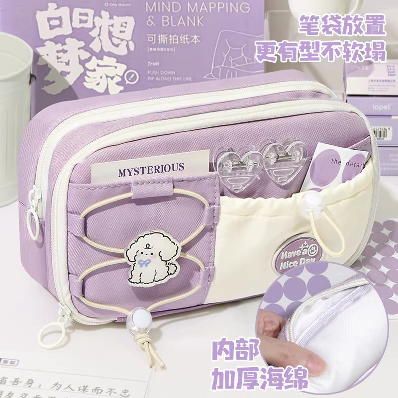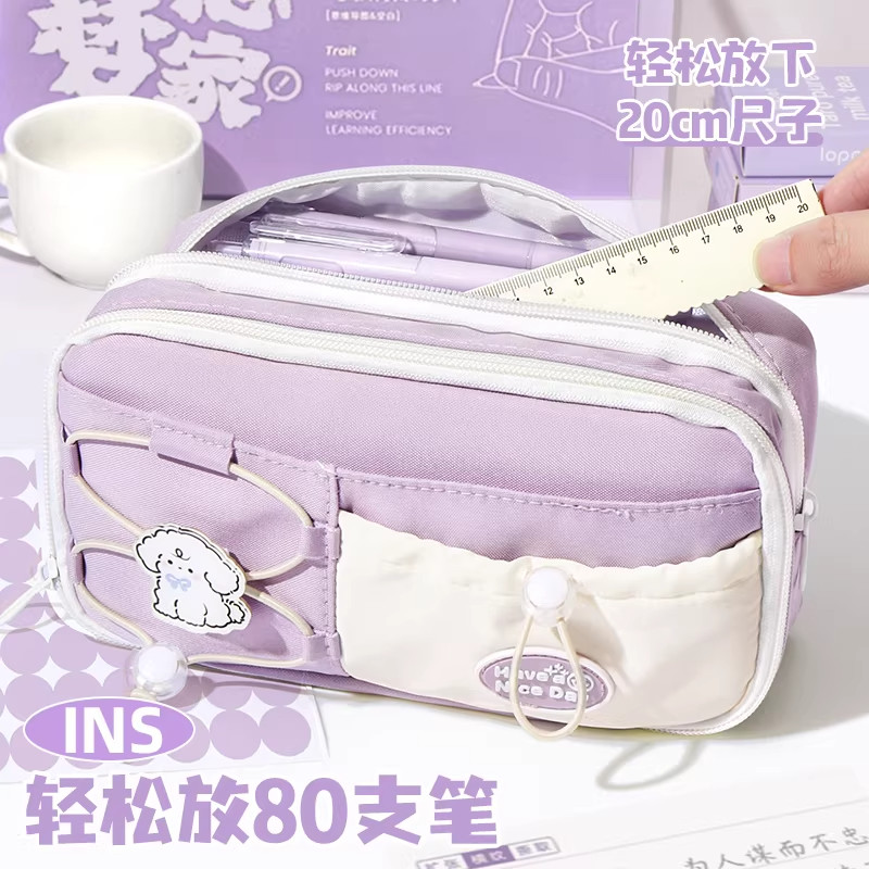 高颜值卡通小狗笔袋女生小学生线条铅笔文具盒女孩冷门小众不撞款