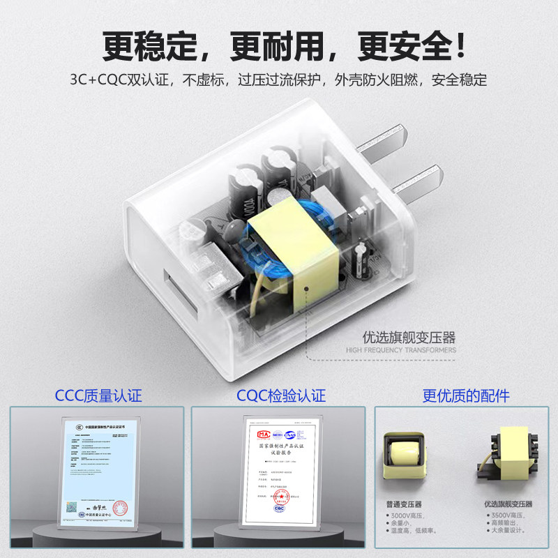 充电器头5V3A电源适配器USB插头美容仪充电宝风扇吉他音响散热器无线充安卓通用15w5伏3安3C认证5v3000mA正品