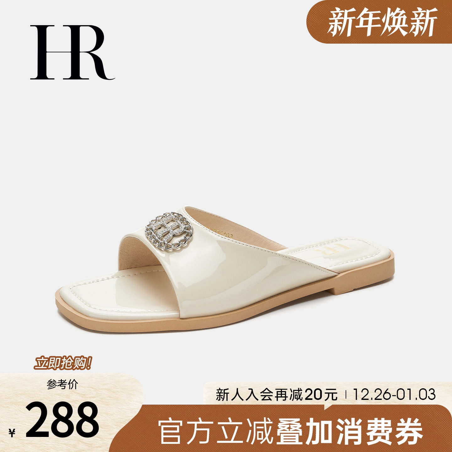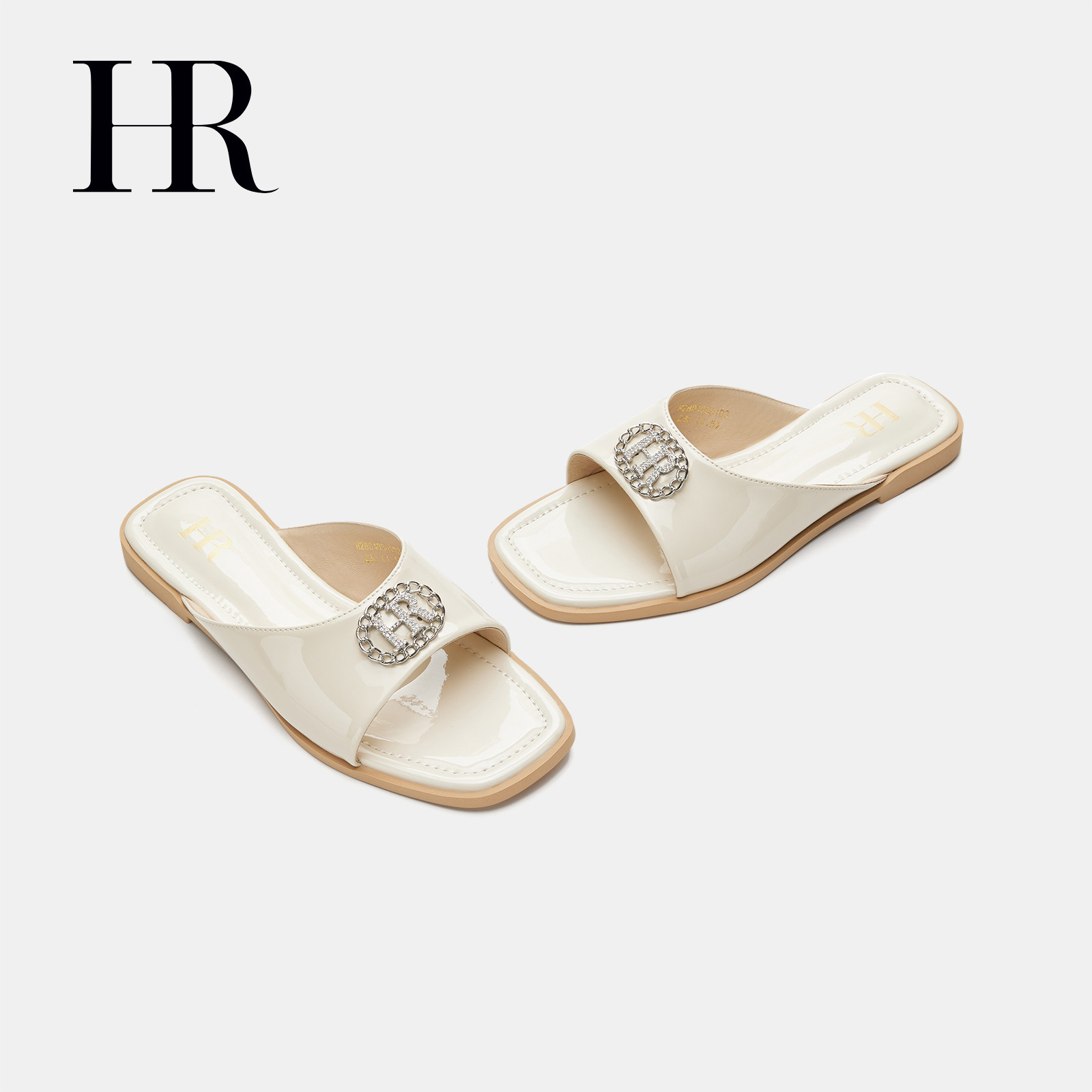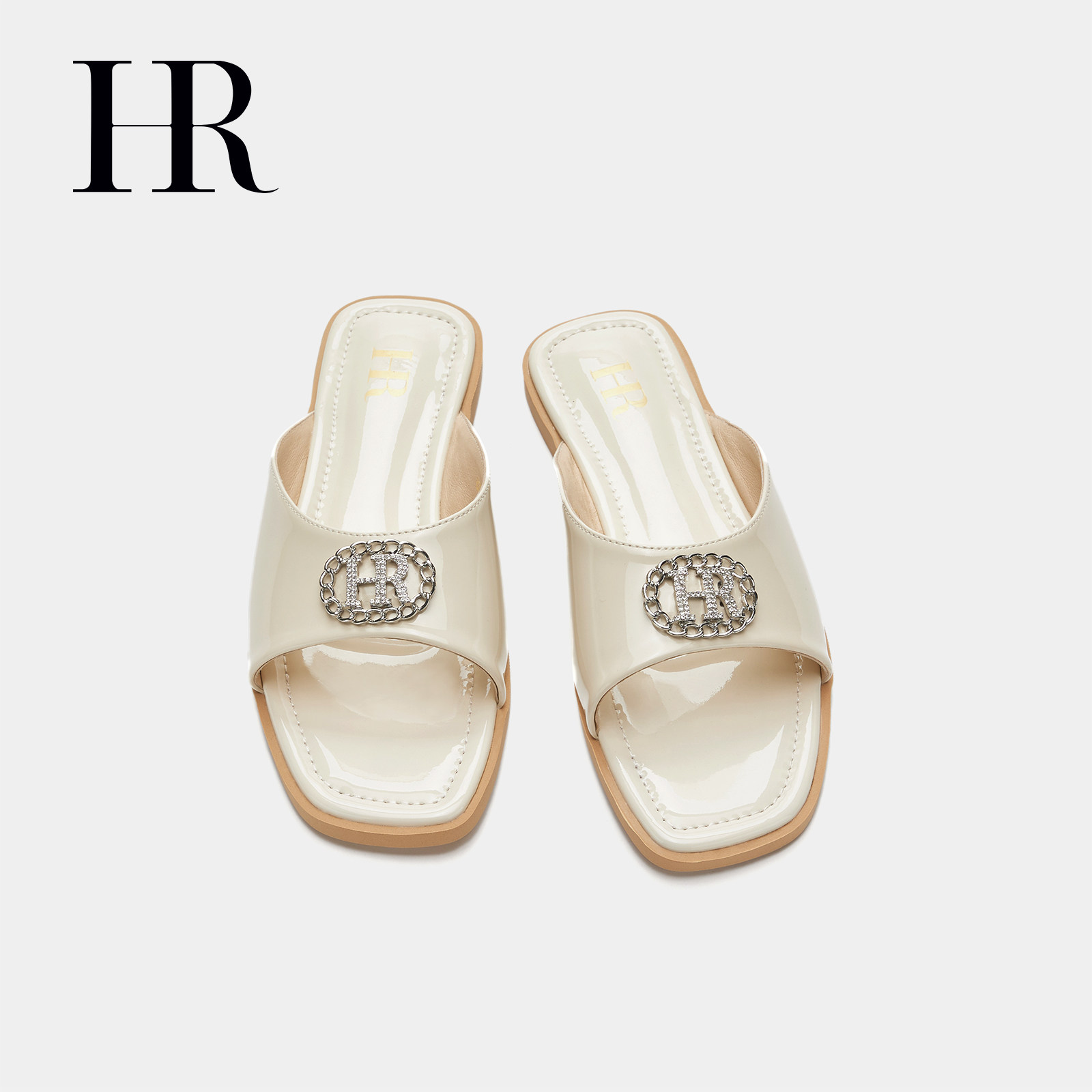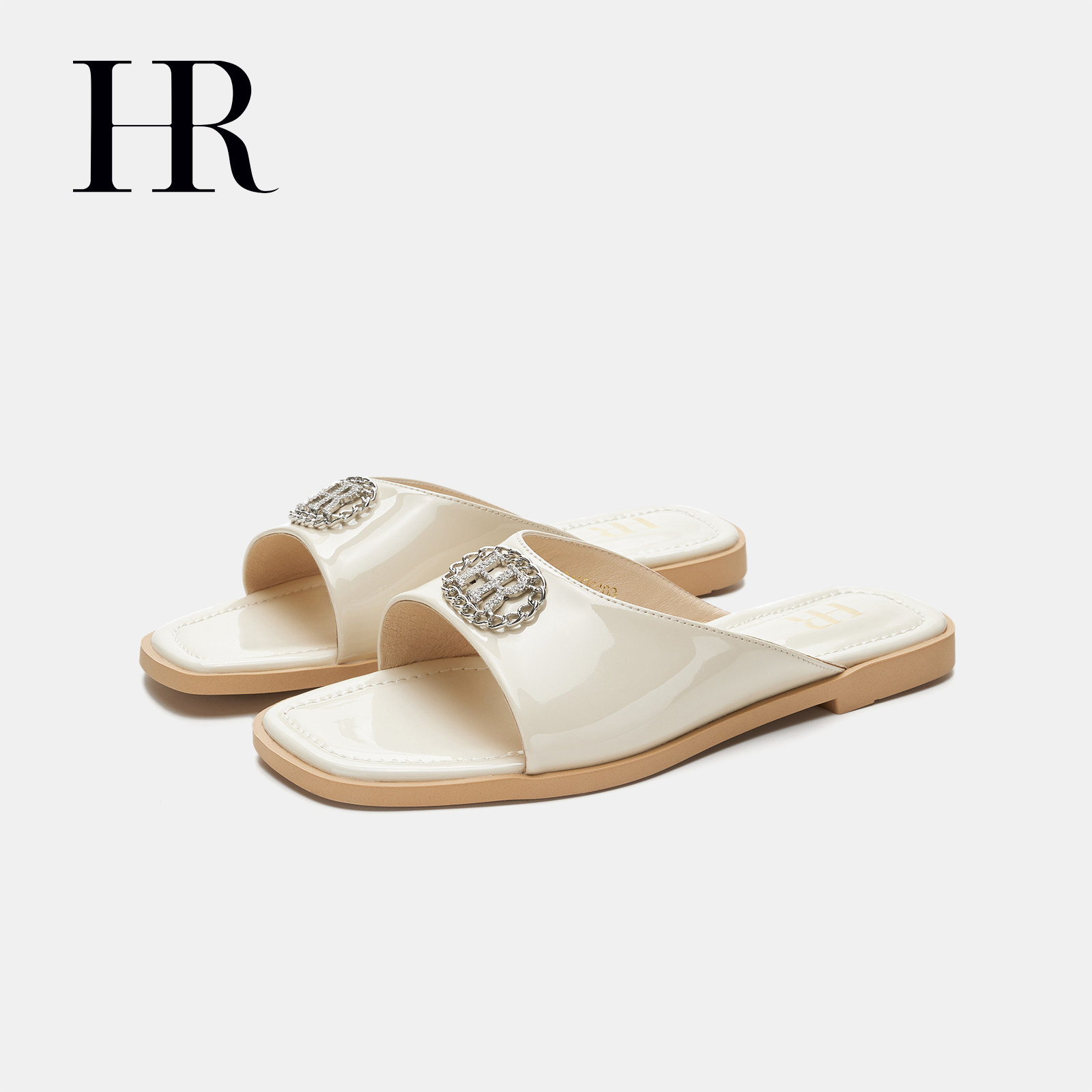 HR赫莲娜女鞋子2025夏季新款一字拖鞋外穿平底百搭亮面仙女风时尚