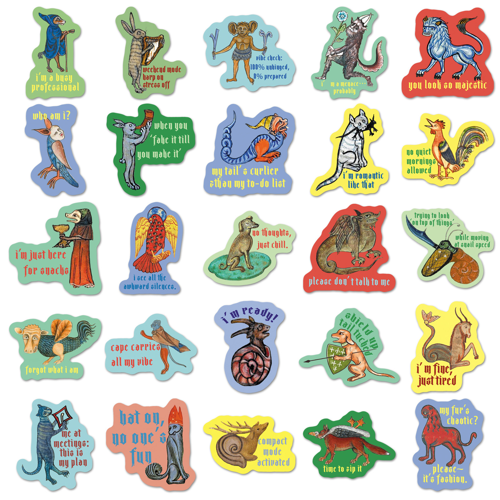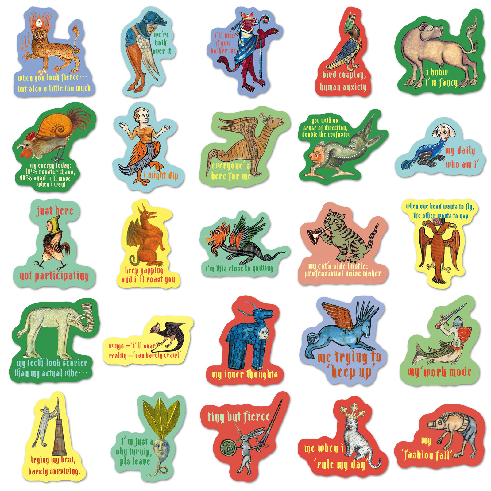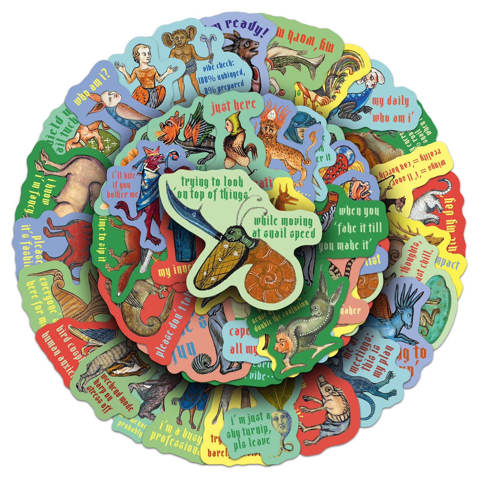 100张复古中世纪搞怪语录创意贴纸趣味卡通涂鸦防水装饰笔记本电脑水杯滑板车学生文具行李箱充电宝iPad贴纸
