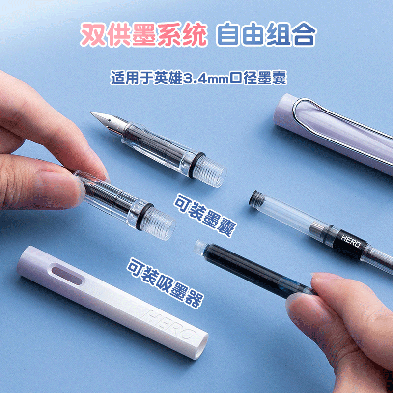 英雄牌钢笔小学生三年级专用正姿初学者儿童练字高颜值可替换墨囊