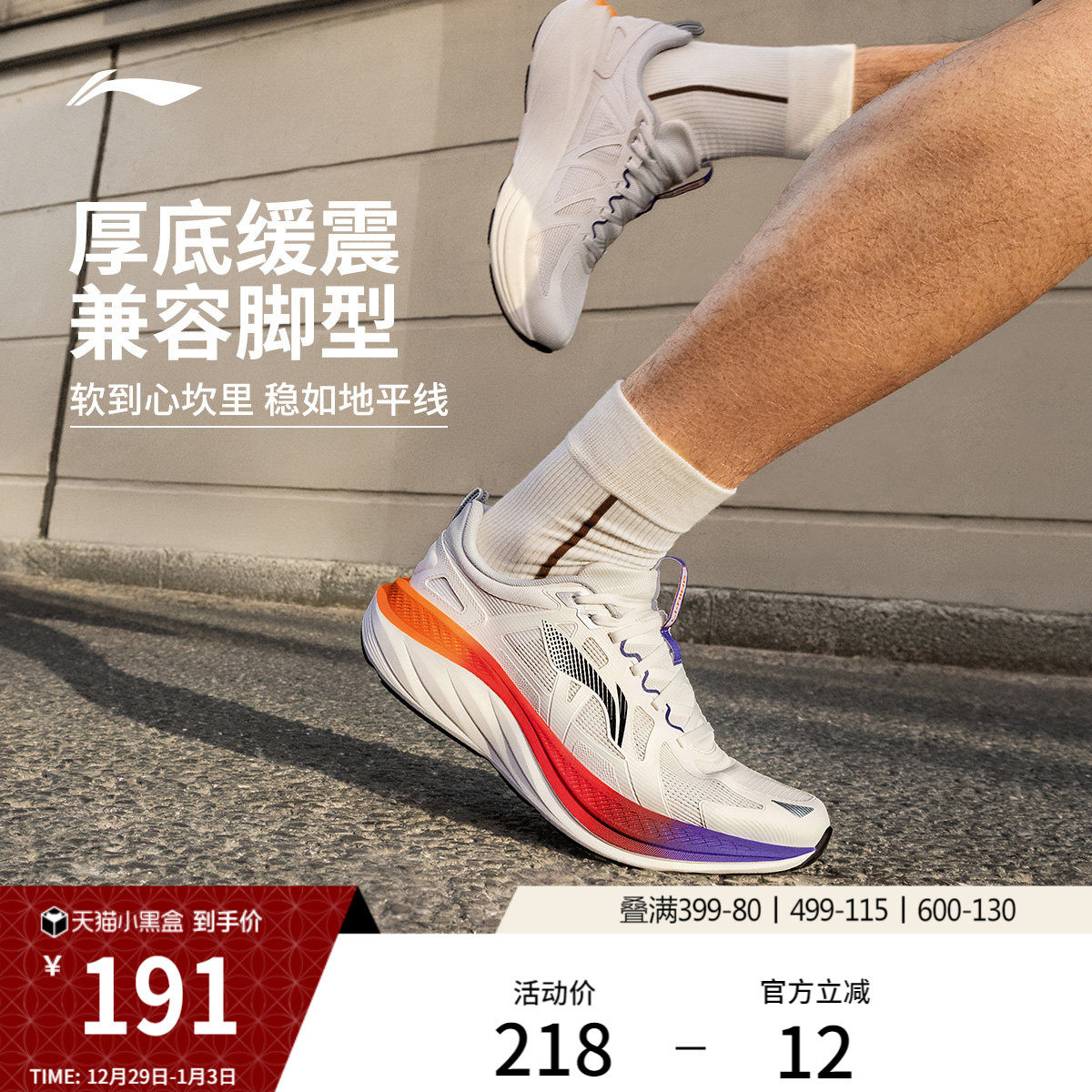 李宁悠然丨 跑步鞋男款厚底减震回弹轻便网面透气软底增高运动鞋