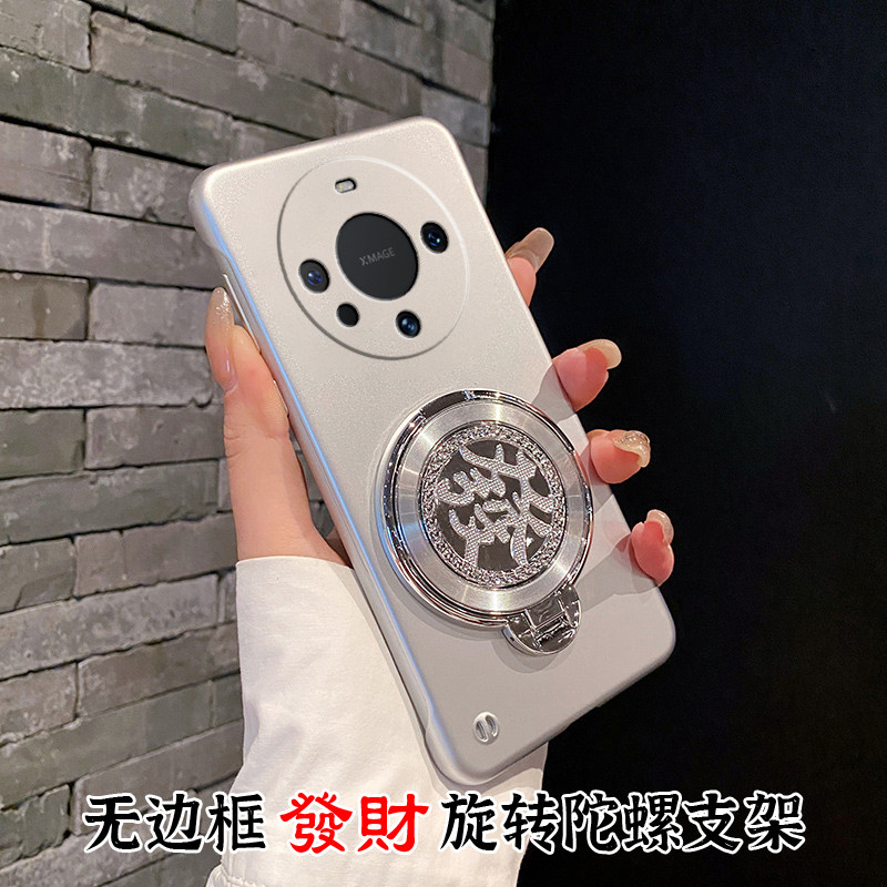 华为Mate60手机壳新款无边框创意硬壳2026新年款Mate60Pro中国红发财旋转陀螺支架Mate60Pro+超薄保护适用于