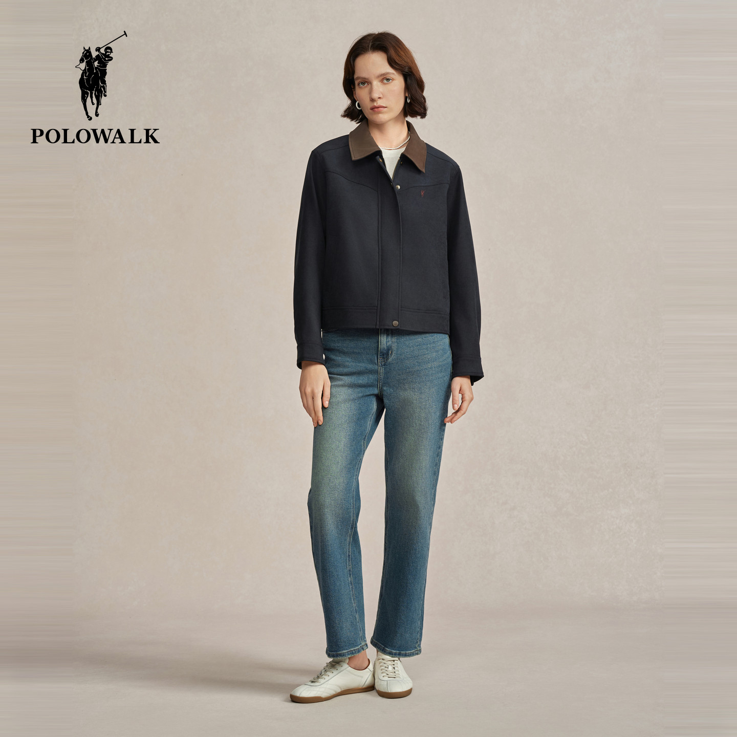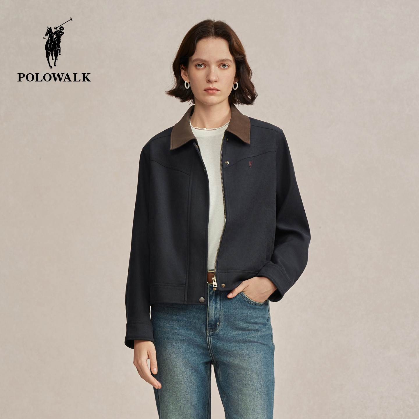 POLOWALK女装外套2026春季新款女士翻领外套时尚百搭上衣撞色夹克