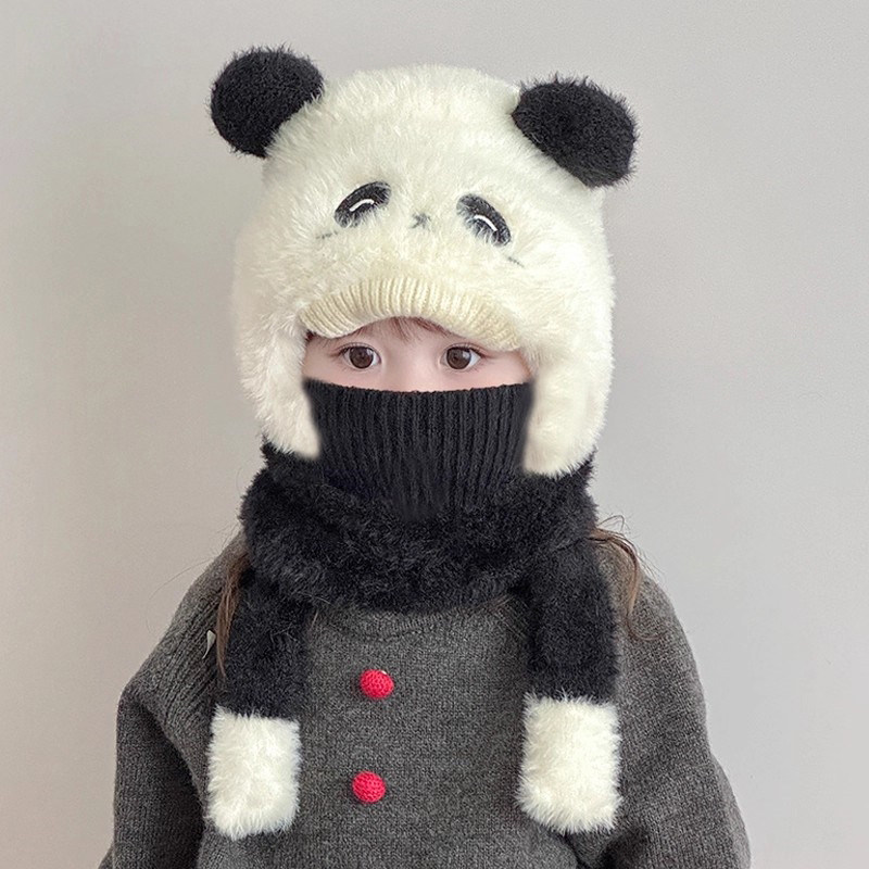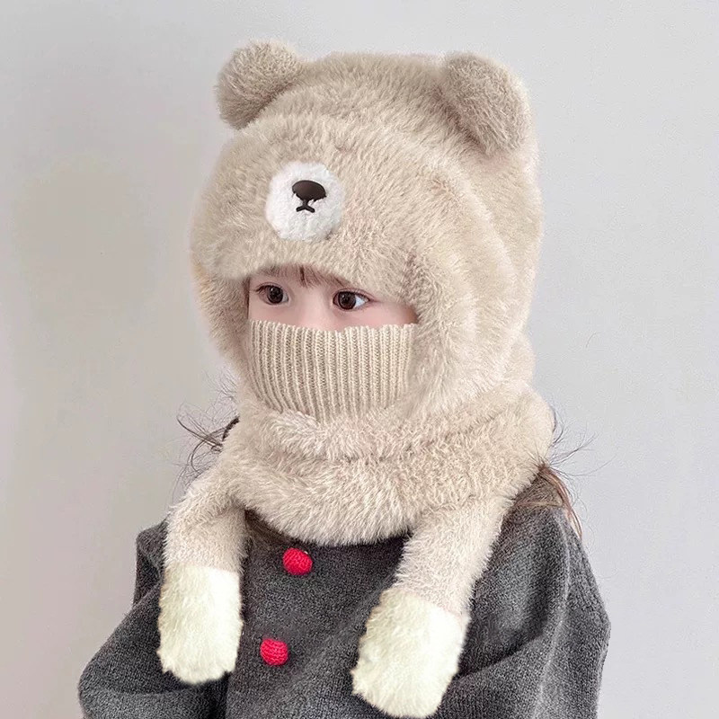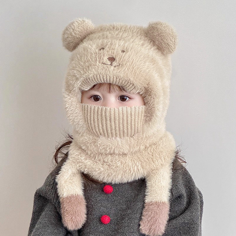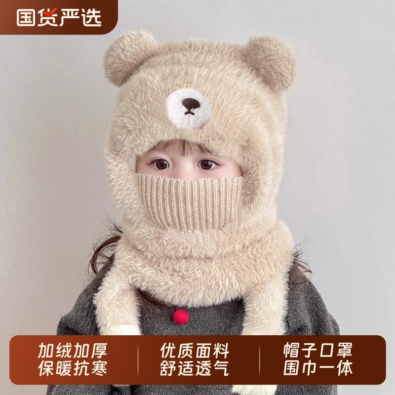 尼多熊儿童帽子围巾一体冬季防风帽宝宝毛绒护耳帽女童加厚保暖帽