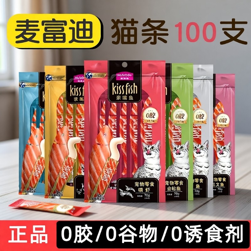麦富迪亲嘴鱼猫条100支整箱猫零食猫咪幼猫罐头冻干主食猫条零食