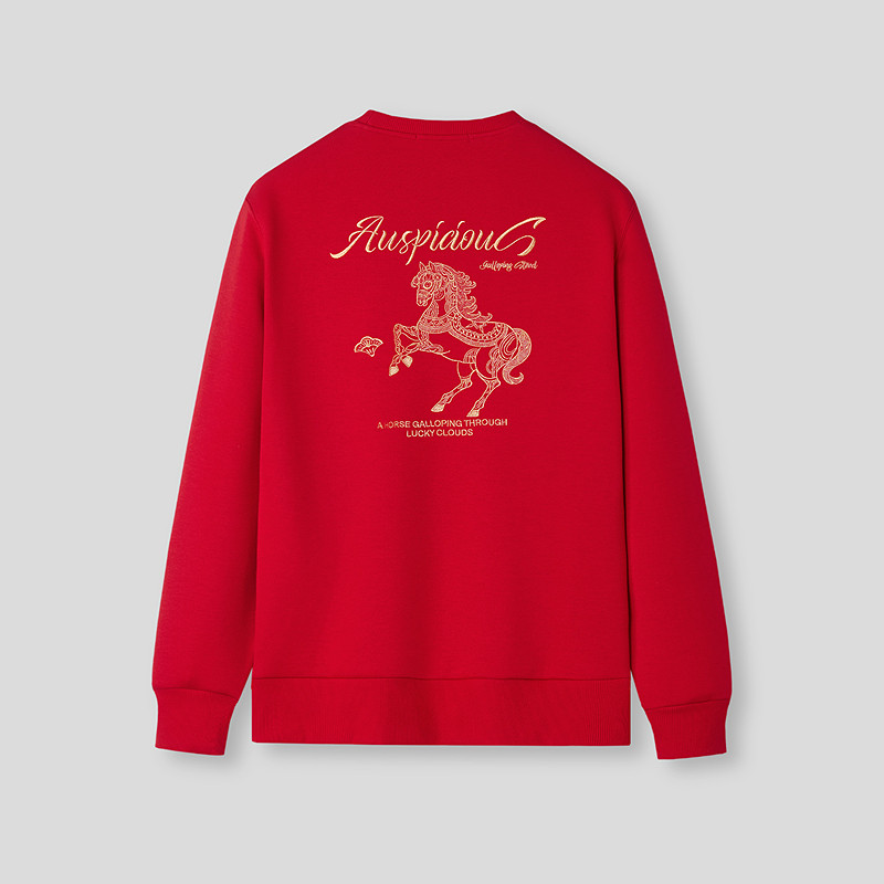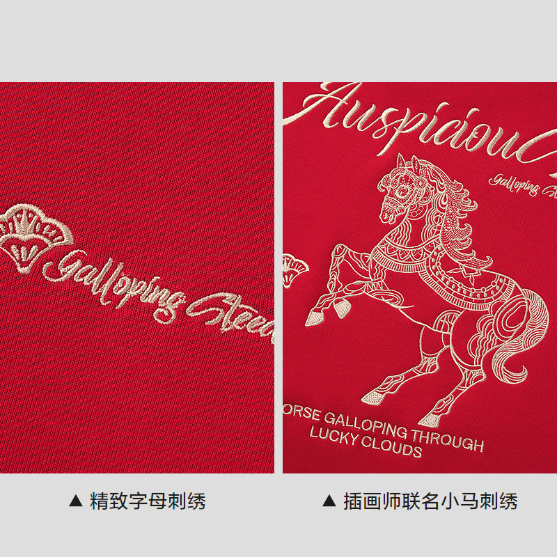 马年贺岁系列 时尚刺绣 罗纹圆领