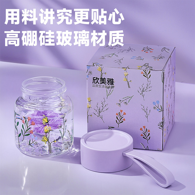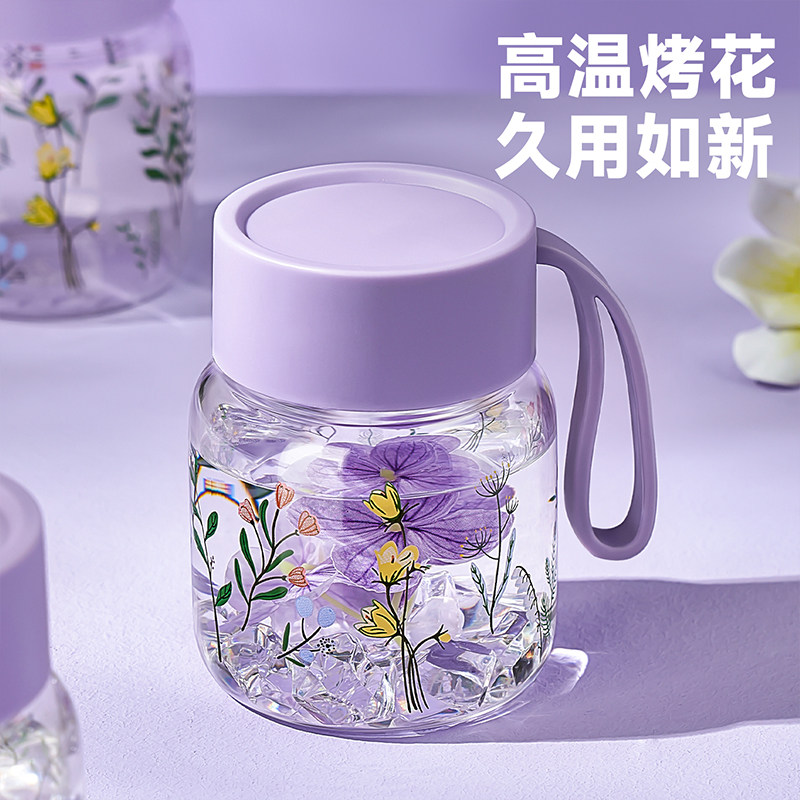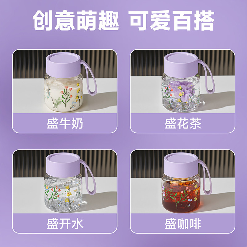 高硼硅玻璃杯女高颜值果汁杯带盖随手杯家用耐高温水杯咖啡杯子
