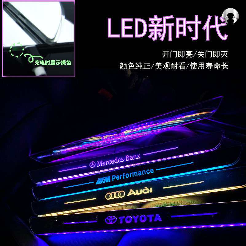 幻彩流光跑马迎宾踏板灯汽车门槛条免接线usb充电磁感应LED脚踏板