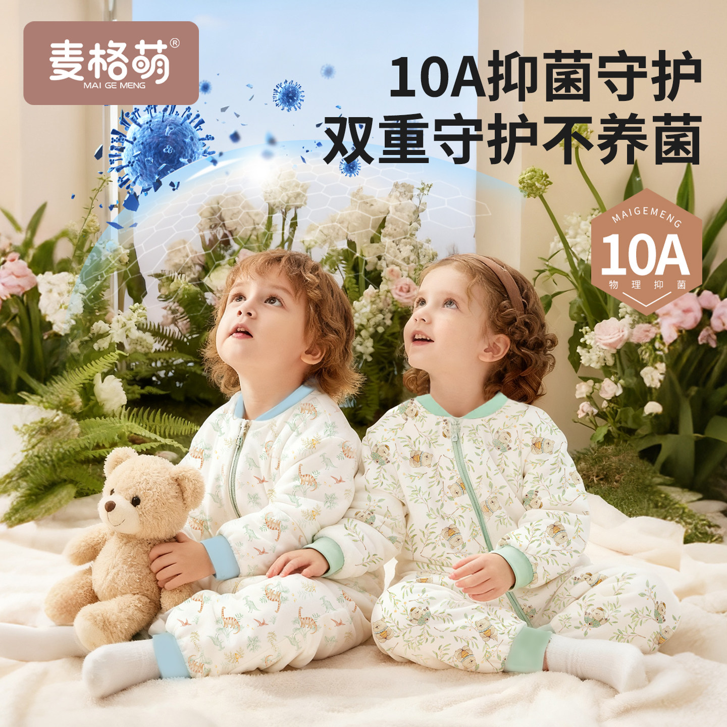 麦格萌婴儿睡袋秋冬加厚暖姜新生宝宝恒温夹棉儿童纯棉分腿防踢被
