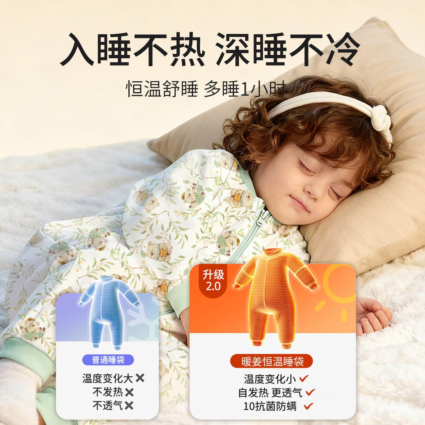 ibaby儿童恒温睡袋婴儿秋冬加厚宝宝防踢被子四季通用防惊跳睡衣