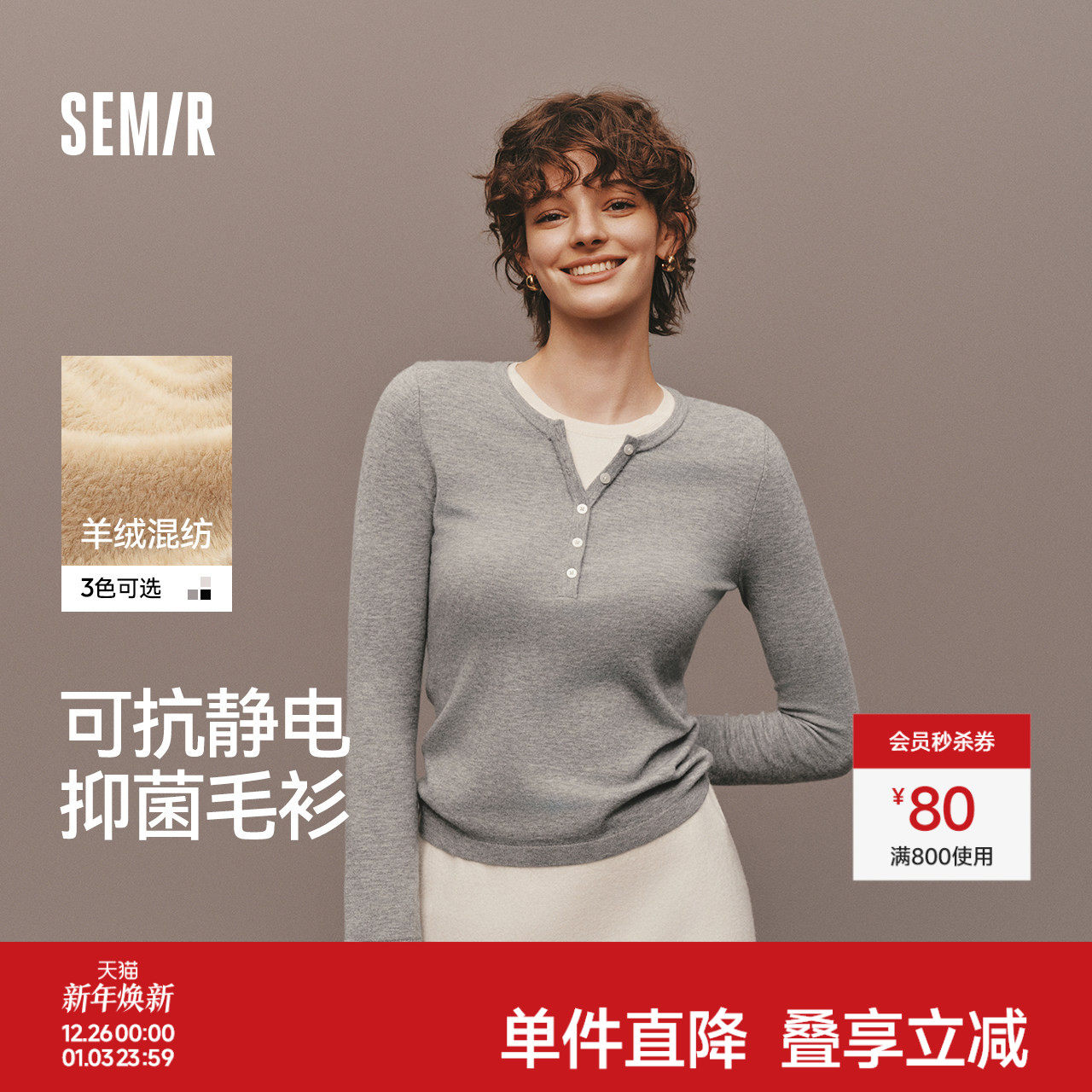 陈都灵同款|森马针织衫女冬含5.9%羊绒发热抗静电修身新款打底衫