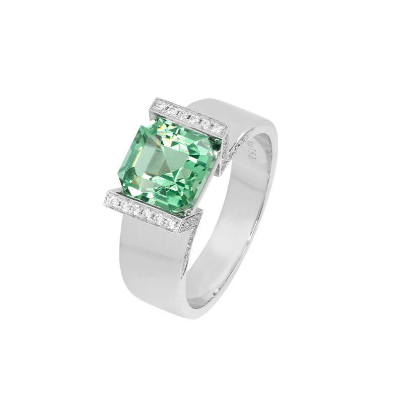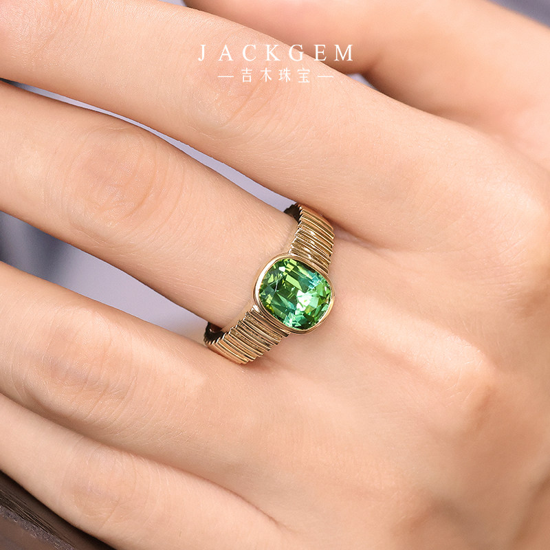 【夏木青松】碧玺戒指女18k金绿色碧玺戒指女珠宝首饰彩宝戒指 D9