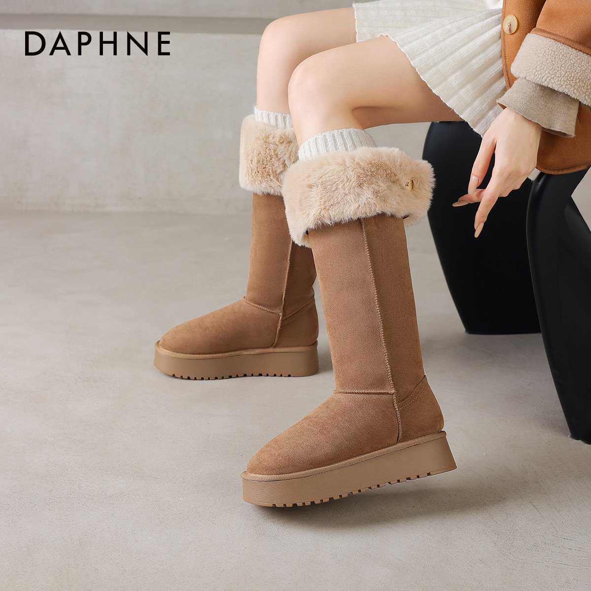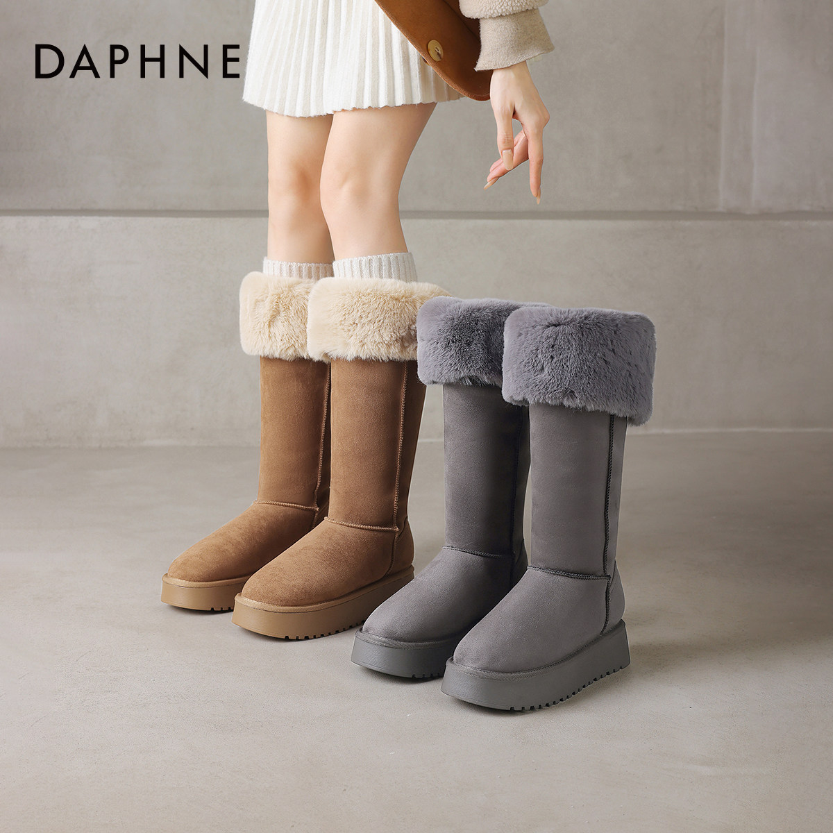 达芙妮长筒雪地靴女款2026新款冬季厚底加绒保暖棉鞋高筒东北棉靴