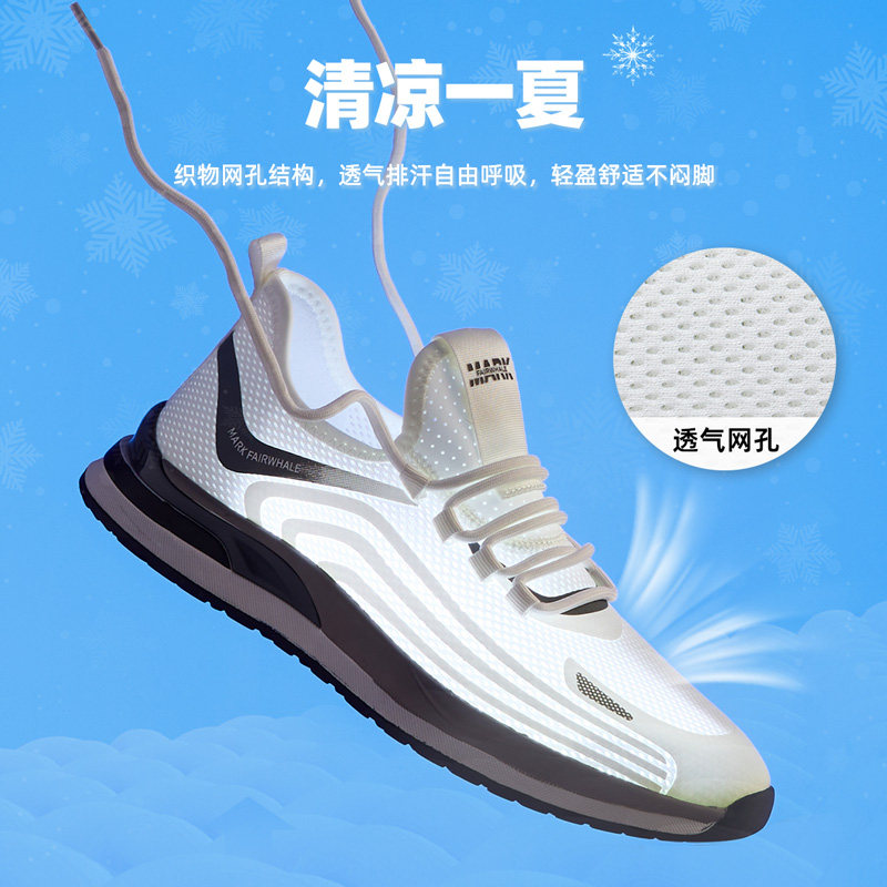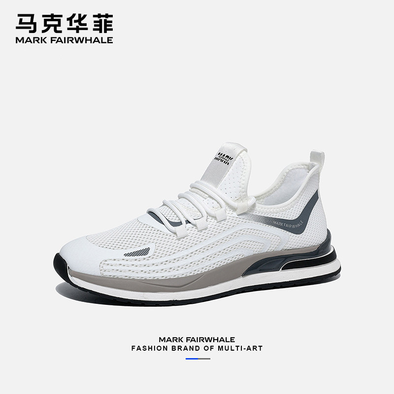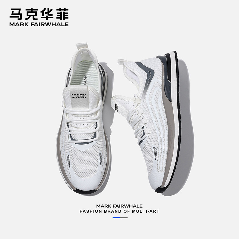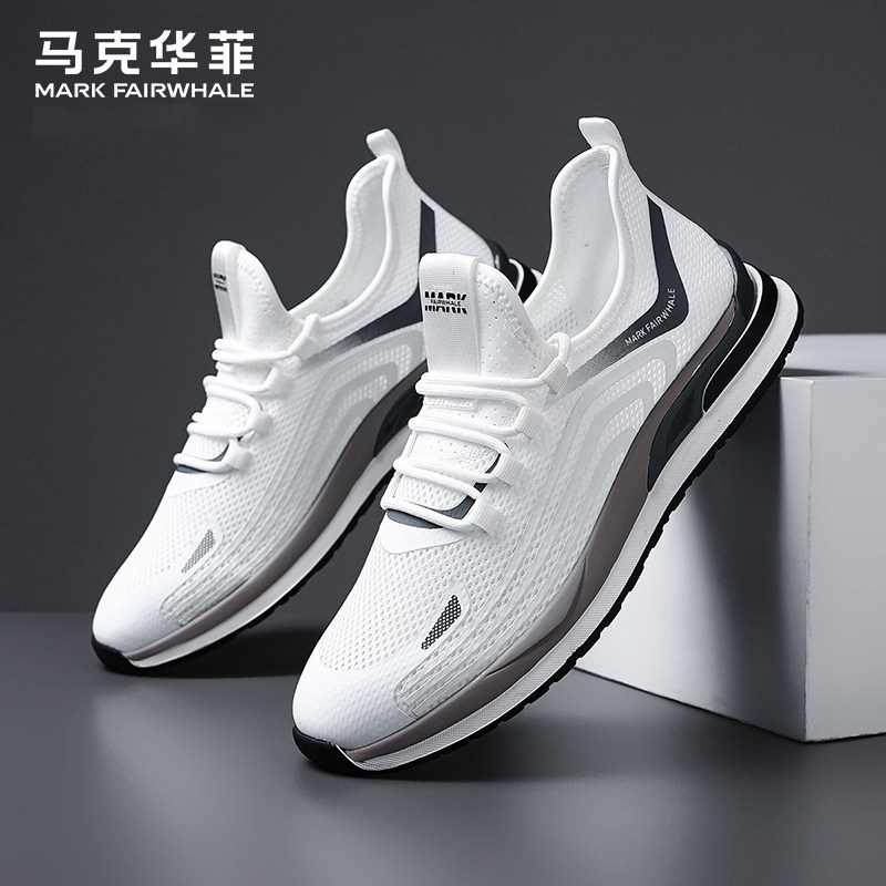 马克华菲网面男鞋2025秋季新款网鞋白色运动鞋男士休闲透气跑步鞋