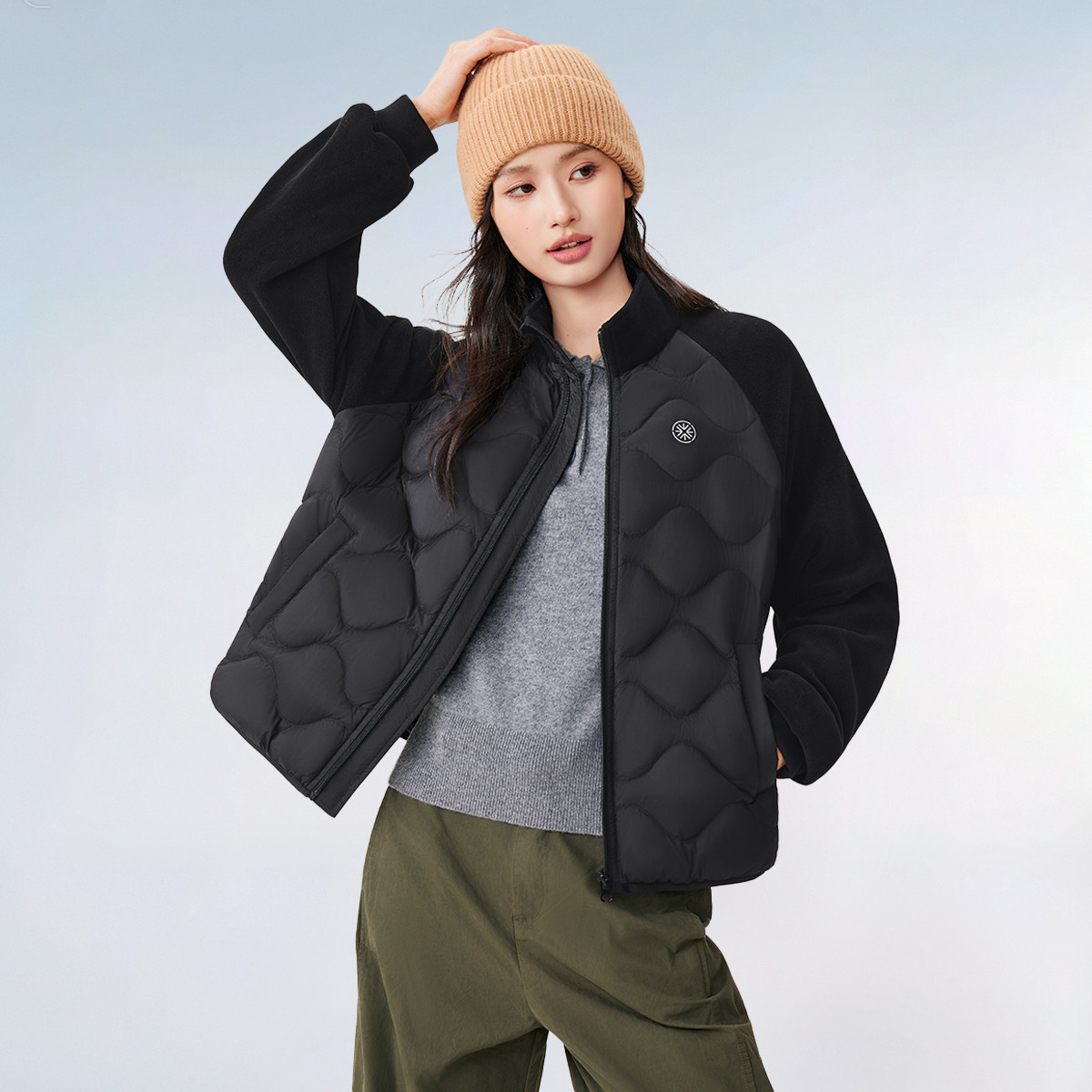 雪中飞2025冬新款女士葫芦纹拼接轻薄羽绒服时尚百搭休闲外套S