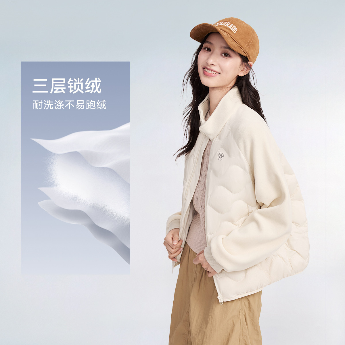 拉夏贝尔2025轻薄羽绒服女短款冬季韩版修身圆领无领内胆保暖外套