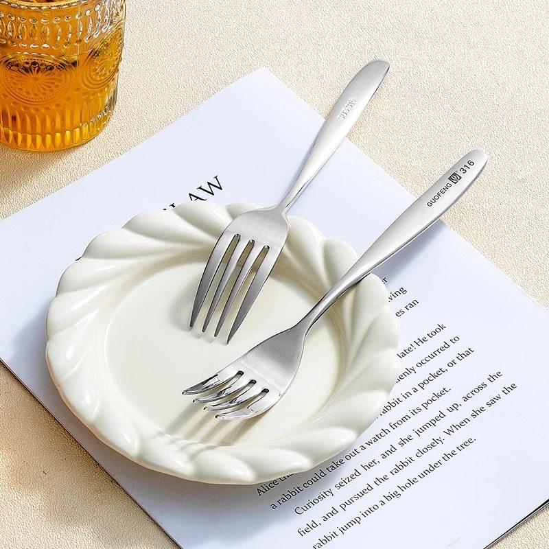国风316不锈钢叉高端西餐叉家用厚柄长柄沙拉叉水果叉子大号餐具