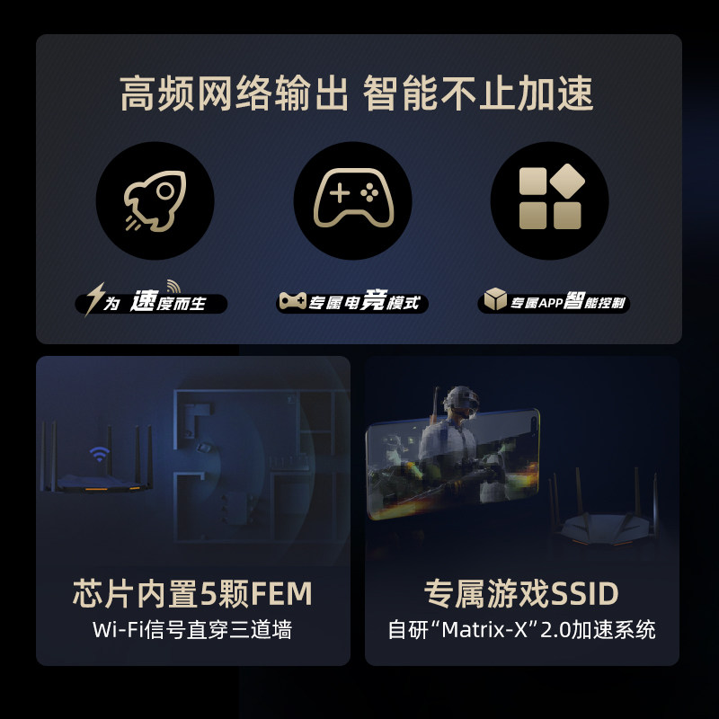 雷系N电竞路由器A8000无线路由器千兆端口WiFi6家用无线双频AX3000高速wifi全屋覆盖手游ps5主机网络游戏加速