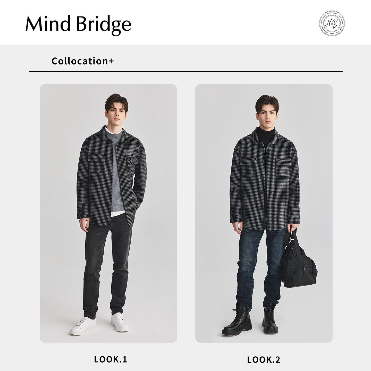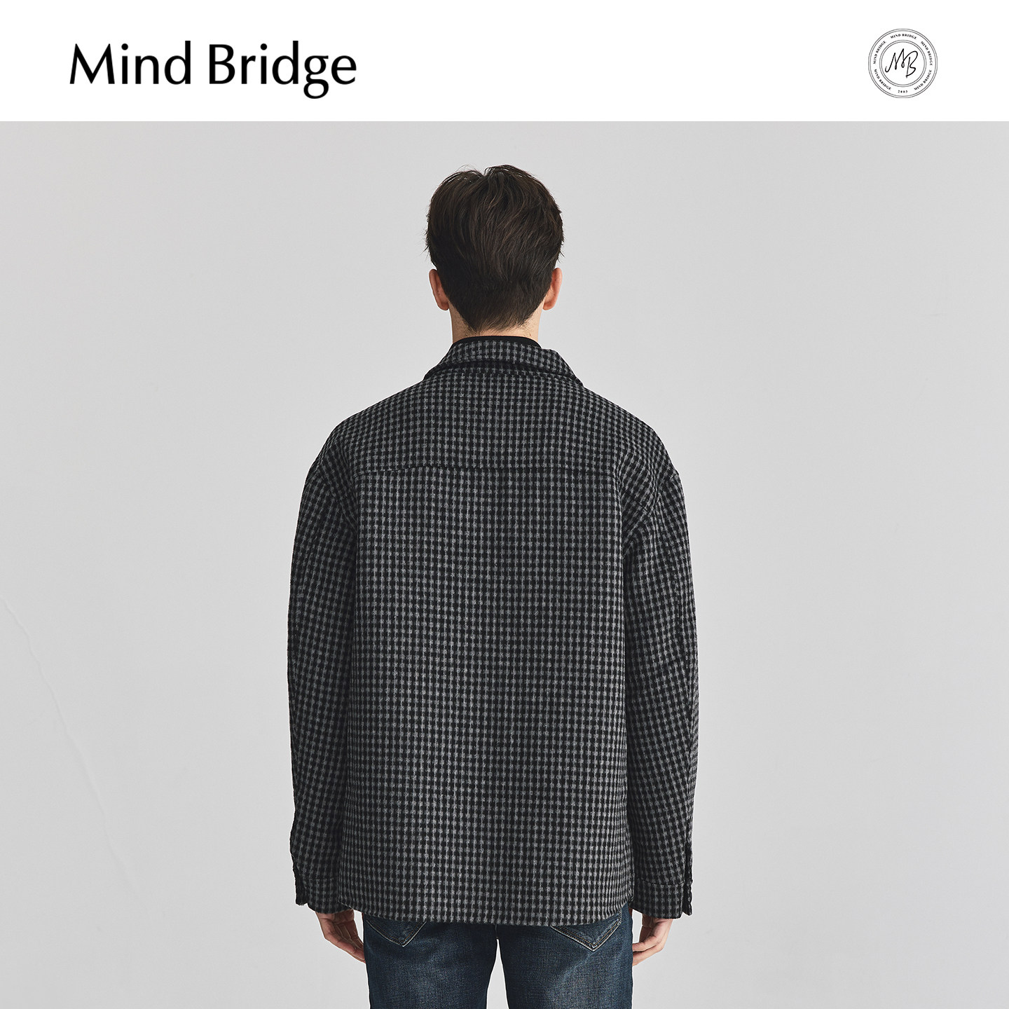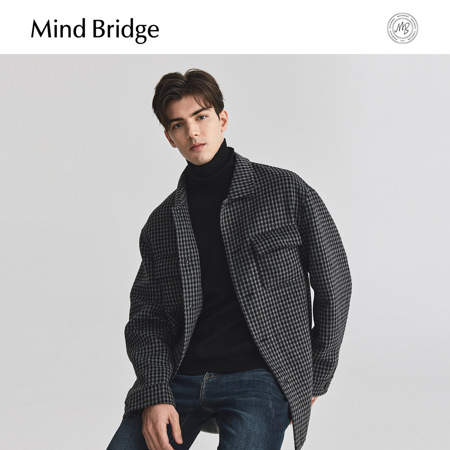 Mind Bridge2025年格纹翻领大衣男士毛呢夹克冬季短款通勤外套