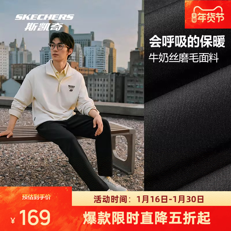 斯凯奇针织空气层长裤冬季男款直筒加绒裤保暖舒适休闲运动