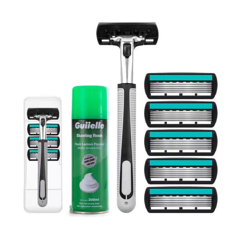 剃须刀6层刀片刮胡刀手动剃须刀男士刮胡子刀头双层刀架不锈钢