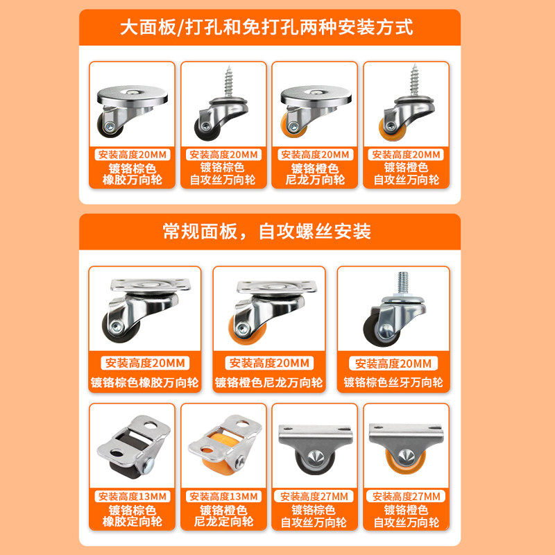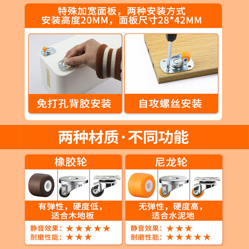 0.5寸迷你万向轮小滑轮静音尼龙脚轮移动底座小轮子承重定向推车