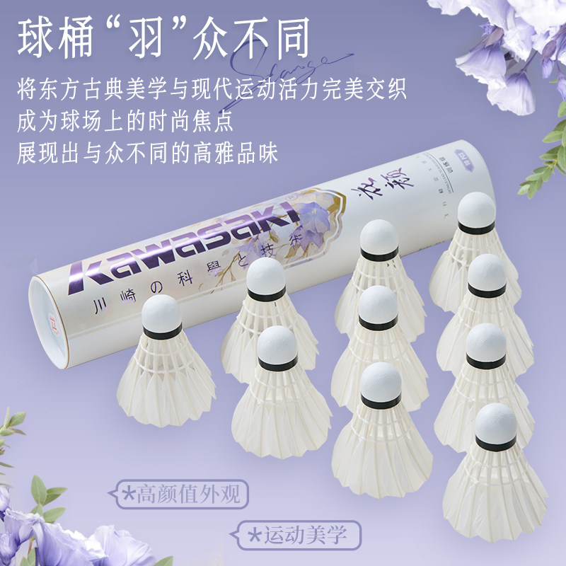 kawasaki川崎羽毛球耐打训练鹅毛鸭毛飞行稳定耐打专业青花瓷花颜