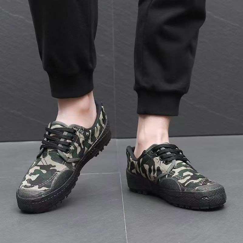 解放鞋夏季男胶鞋绑带款帆布鞋军训劳保鞋工地防臭防滑工作迷彩鞋