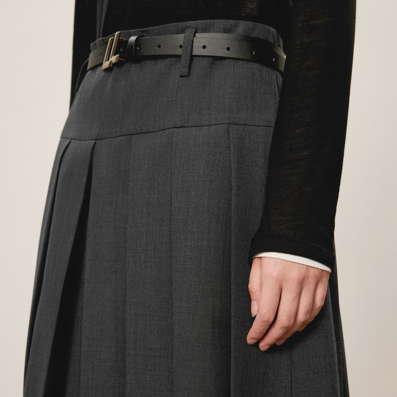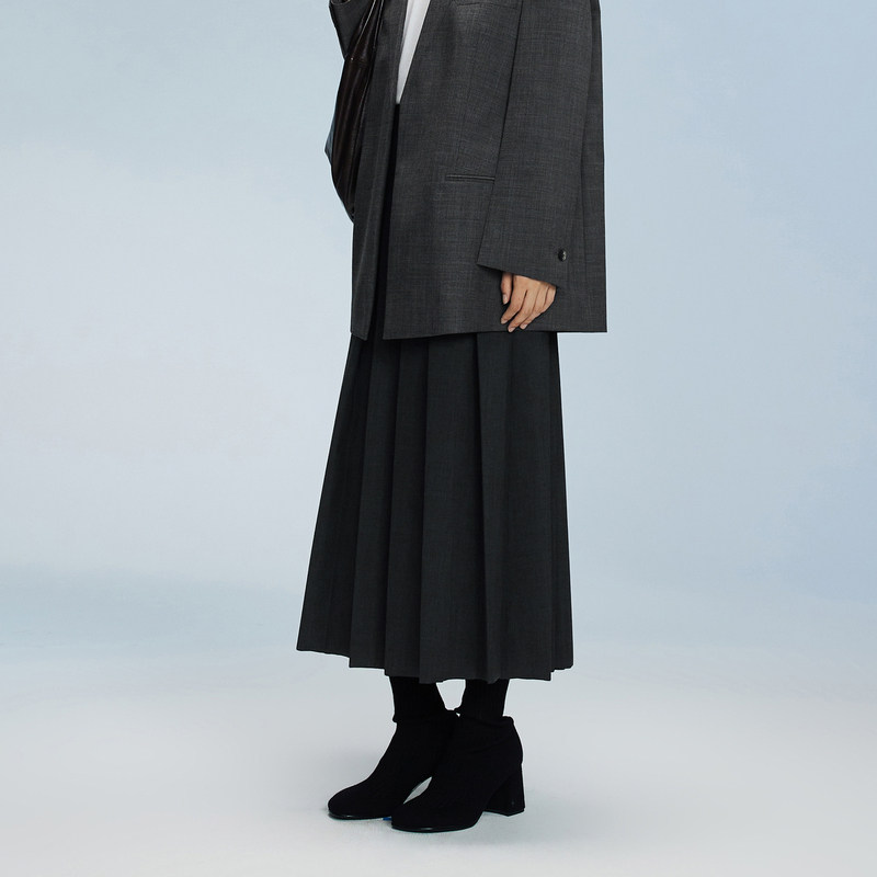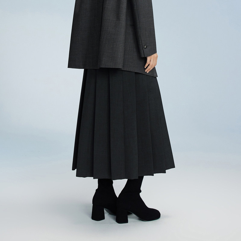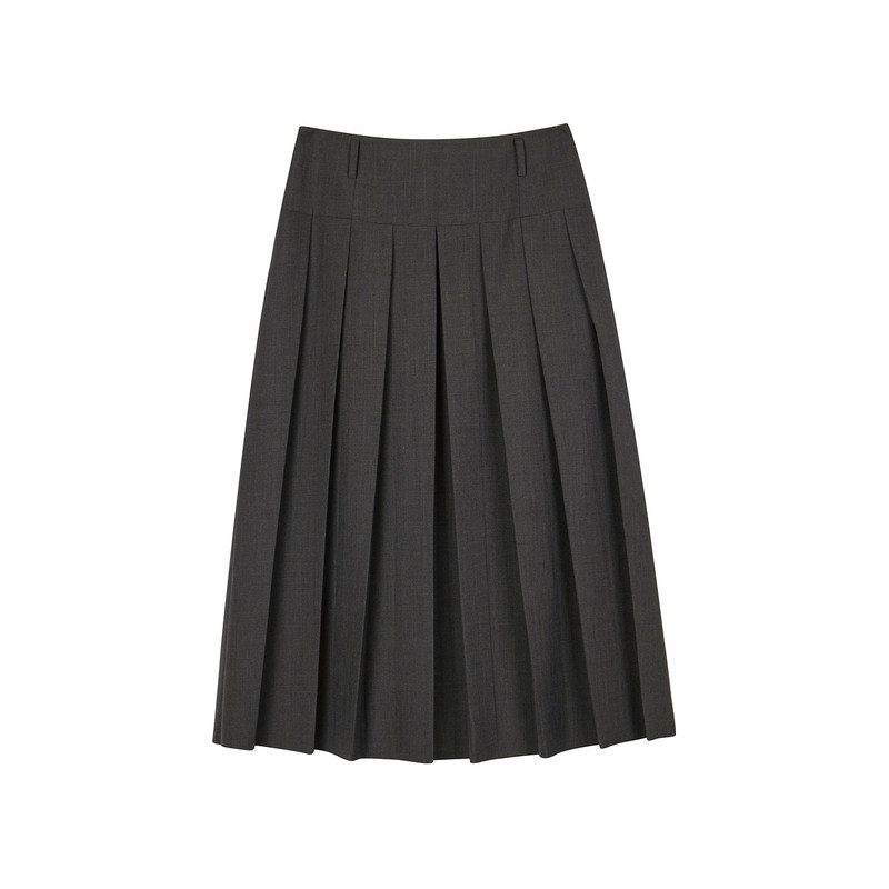 MJ STYLE灰色百褶西装裙女秋冬半身裙高腰休闲大摆a字过膝中长裙