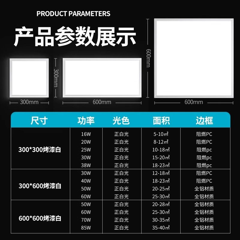 集成吊顶led灯工程灯600x600平板灯石膏格栅灯店铺商用天花吸顶灯