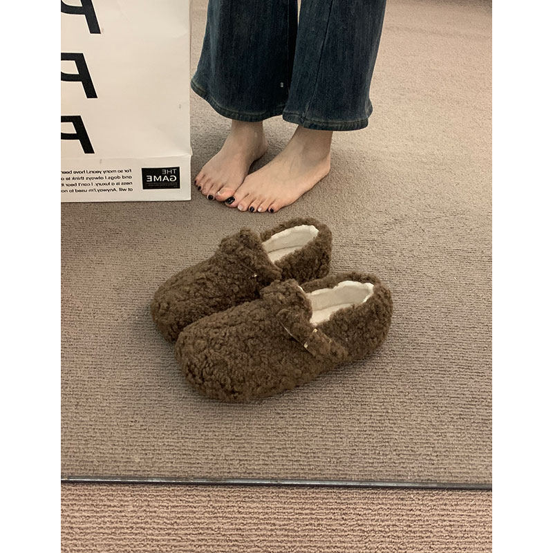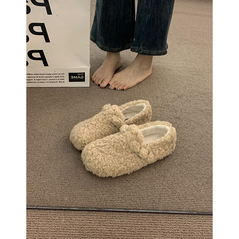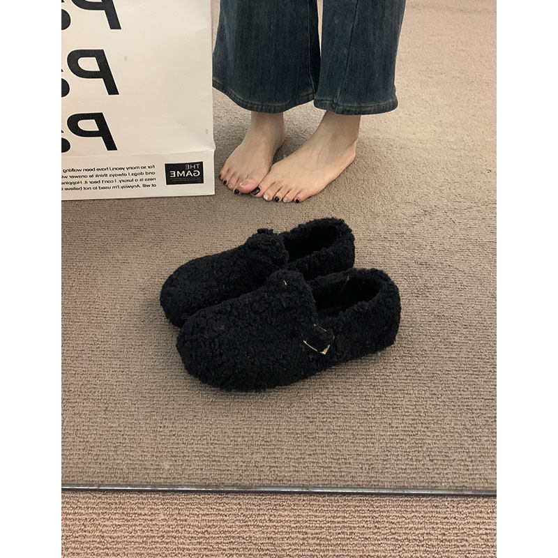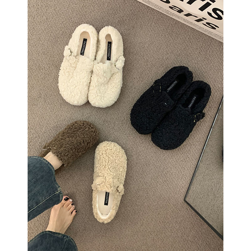 加绒秋冬保暖毛毛棉鞋女冬2025新款羊羔毛勃肯单鞋豆豆鞋内增高