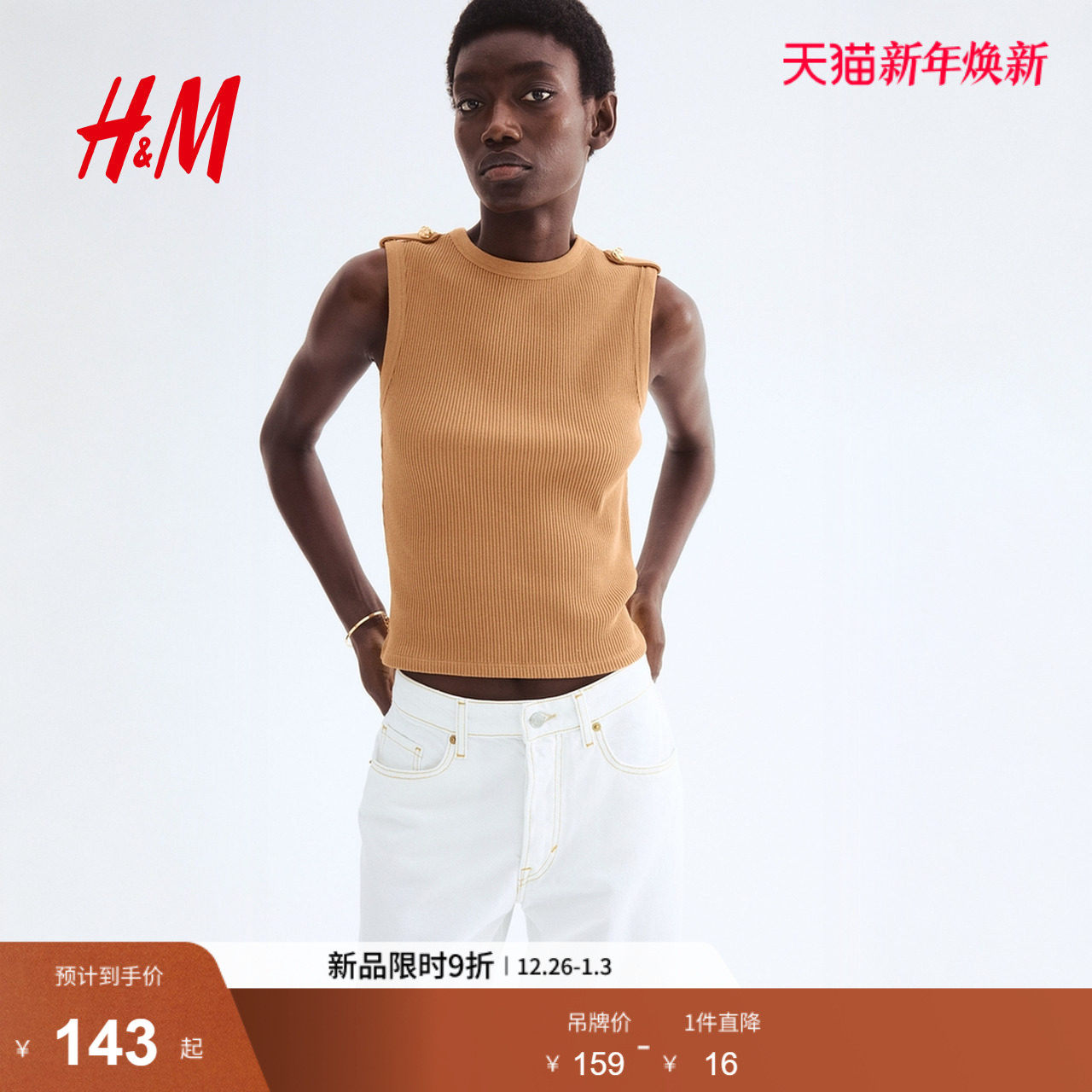 HM女装背心吊带2025冬季新款气质简约柔软潮流罗纹背心1296869