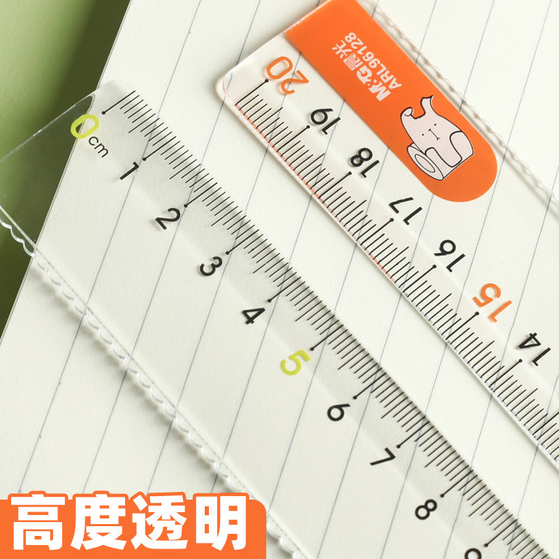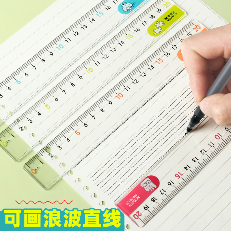 晨光直尺尺子小学生带波浪线绘图测量透明15公分波浪尺15/20/30cm多规格办公文具加厚板尺数学儿童学习用品