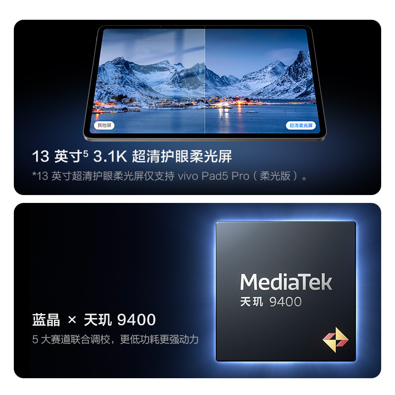 【柔光版开售】vivo Pad5 Pro平板电脑新款天玑9400学生开学好物官方正品13英寸学生加赠平板收纳包