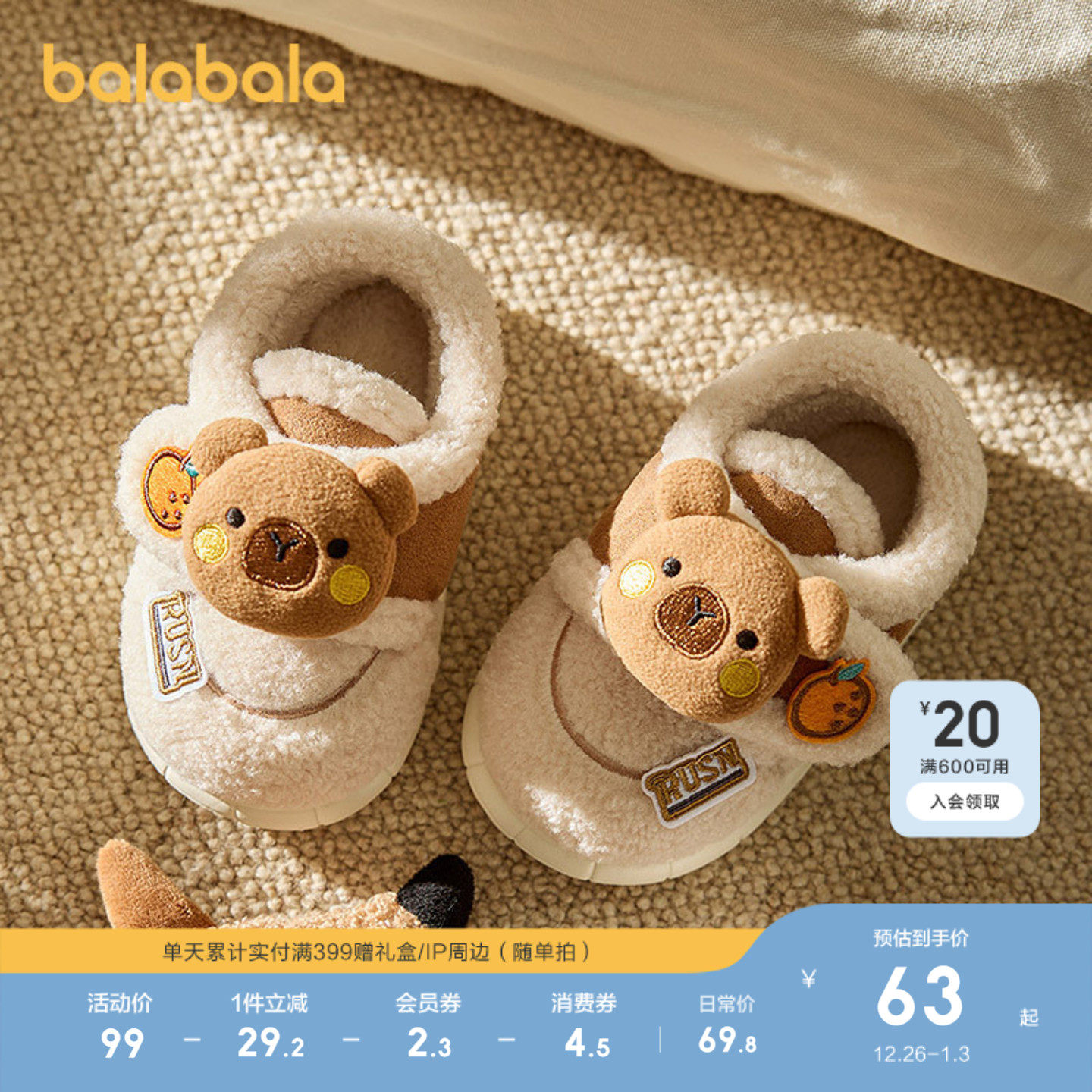 巴拉巴拉童鞋儿童拖鞋加绒保暖女童男童家居鞋包跟2025新款冬棉鞋