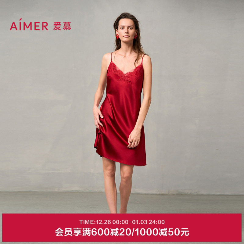 爱慕婚礼之夜本命年红睡衣女真丝性感蕾丝细带吊带睡裙