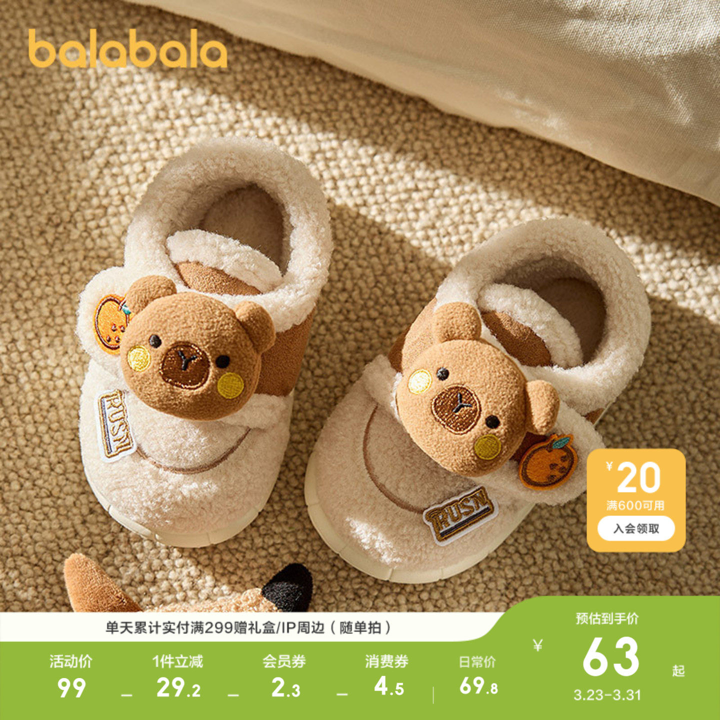 巴拉巴拉童鞋儿童拖鞋加绒保暖女童男童家居鞋包跟冬棉鞋休闲百搭