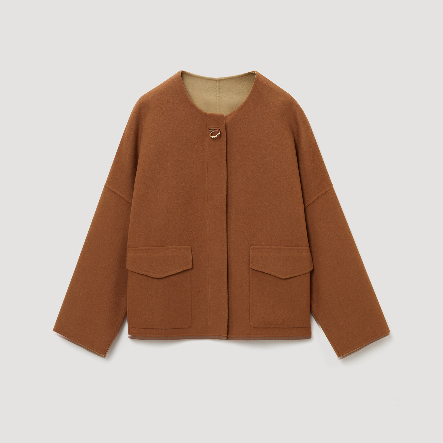 OVV秋冬女装羊毛混纺圆领双面异色呢休闲夹克外套