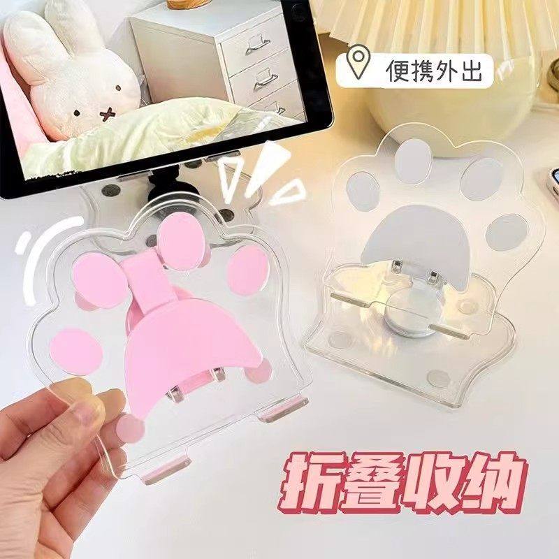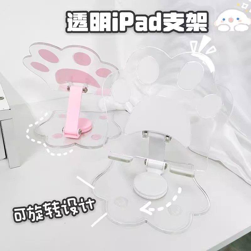 新款猫爪亚克力360旋转手机支架桌面ipad支架多功能通用支撑架便携式可折叠可调节直播支架懒人床头网课神器