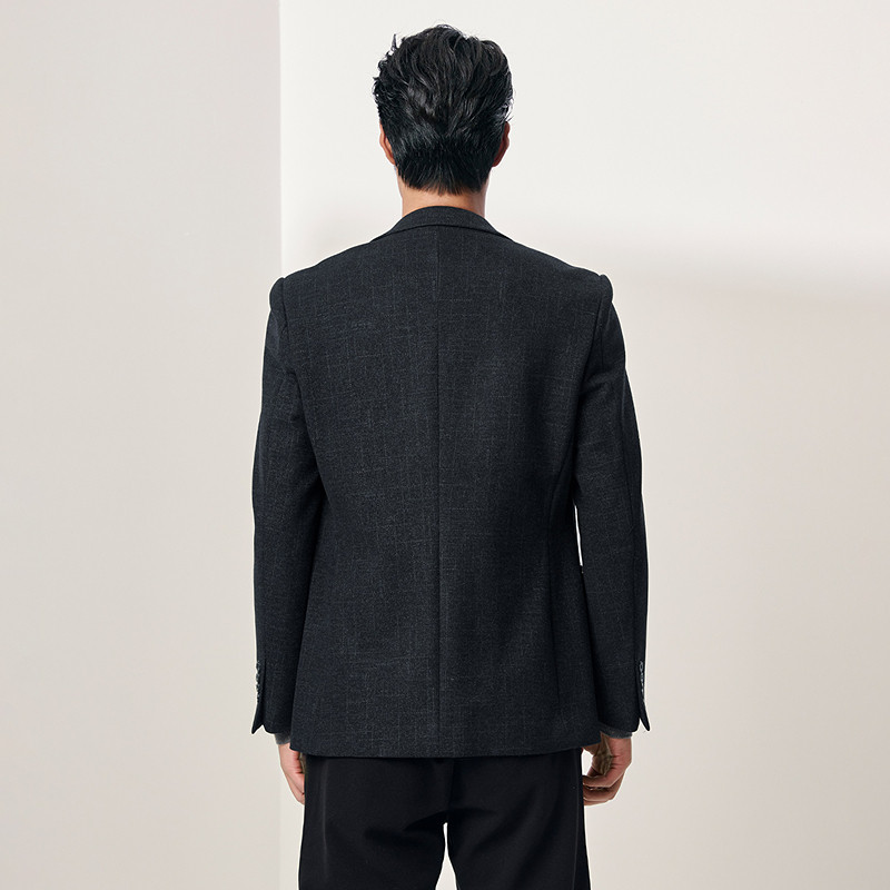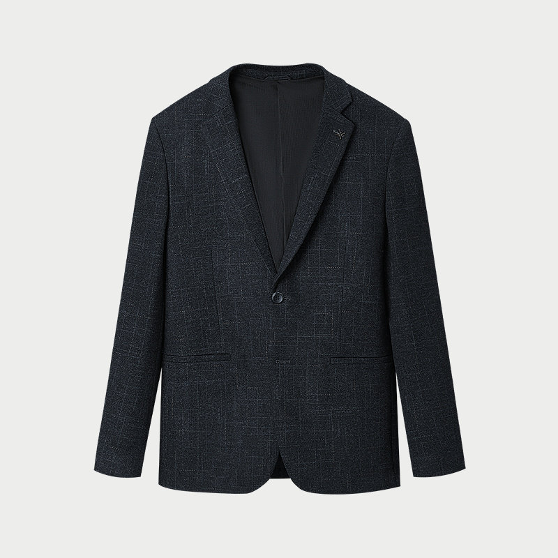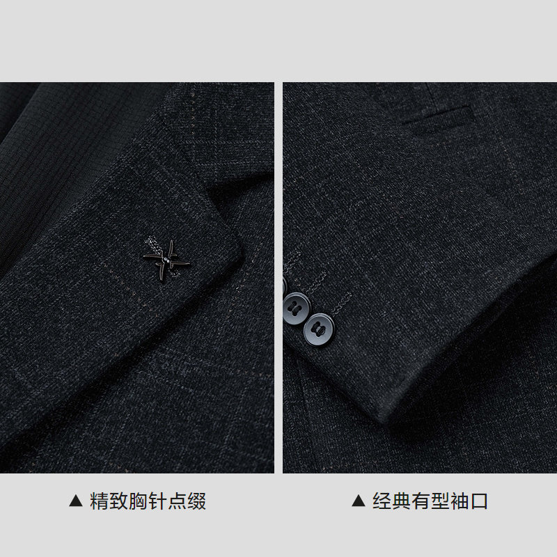 HLA/海澜之家绒感弹力休闲西服2025秋冬新胸针点缀格纹西装外套男