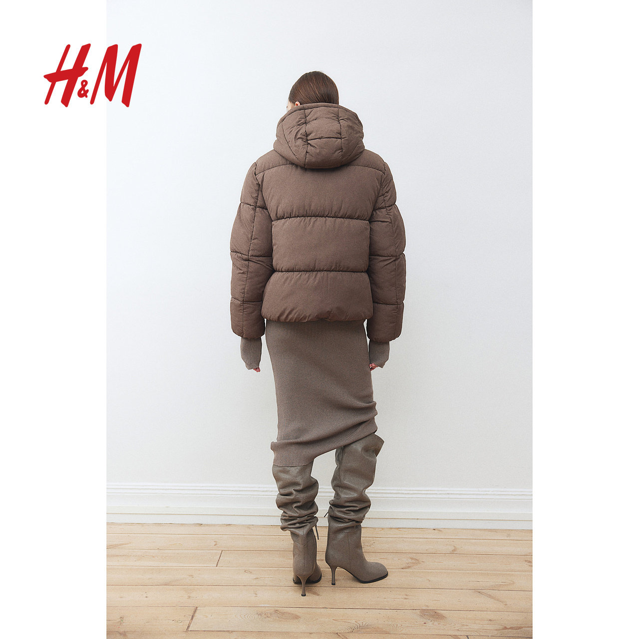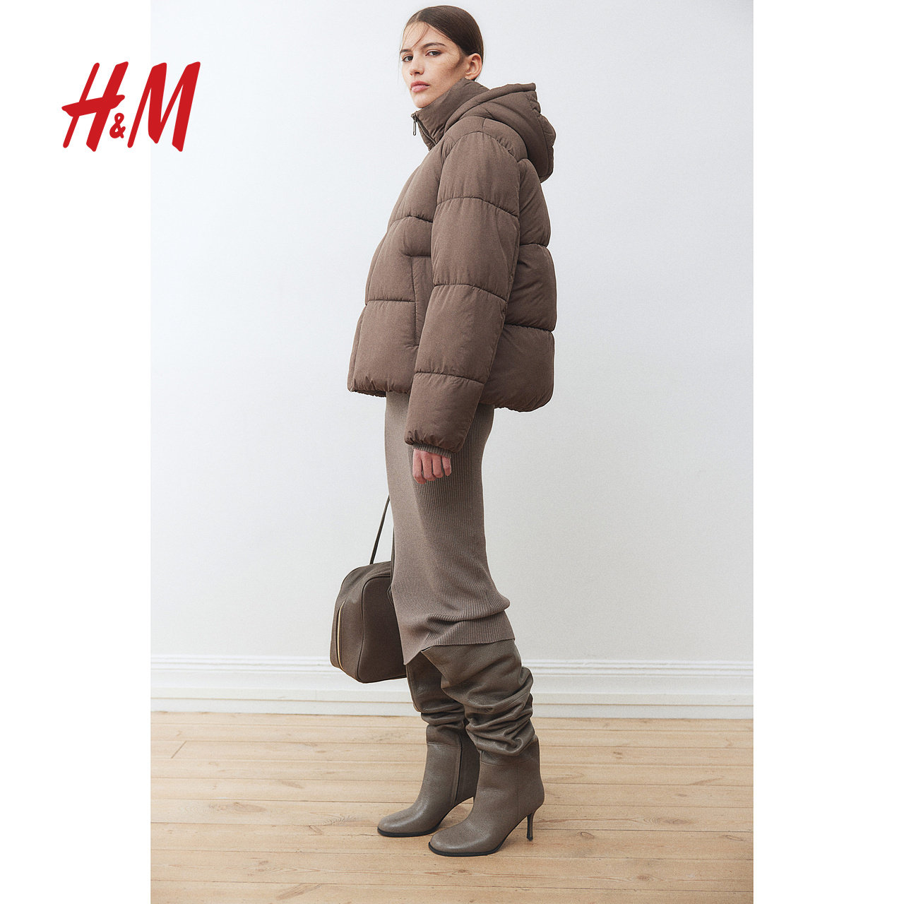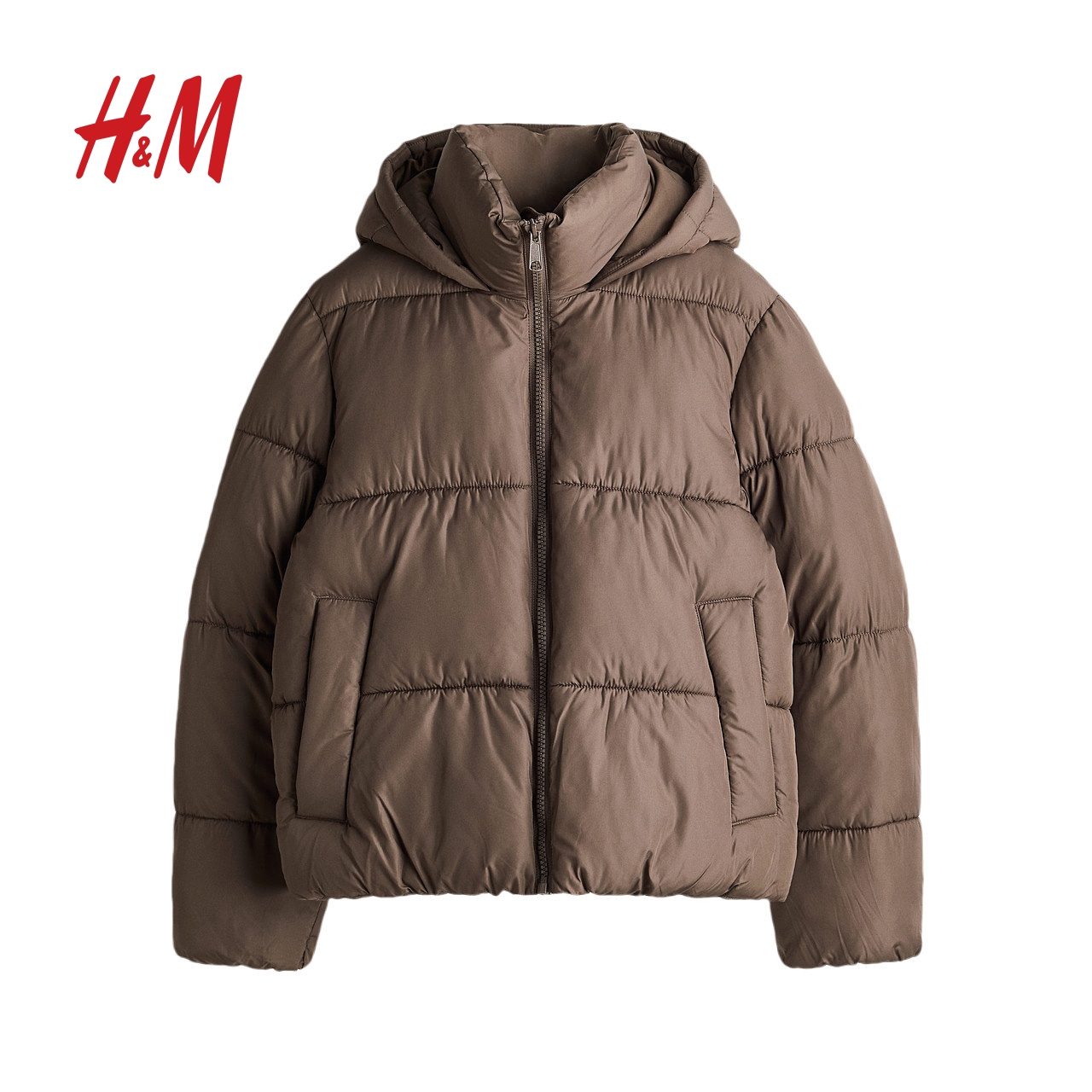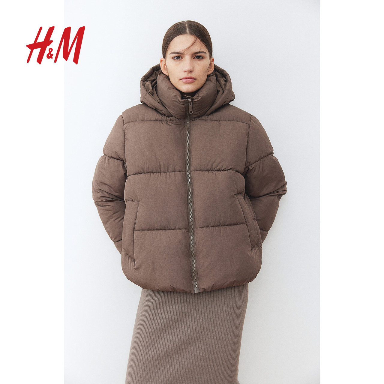 HM女装棉服冬季时尚休闲拉链保暖立领冬装连帽棉袄外套1171101