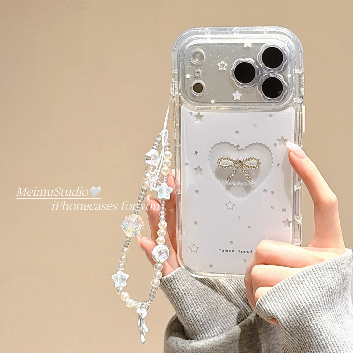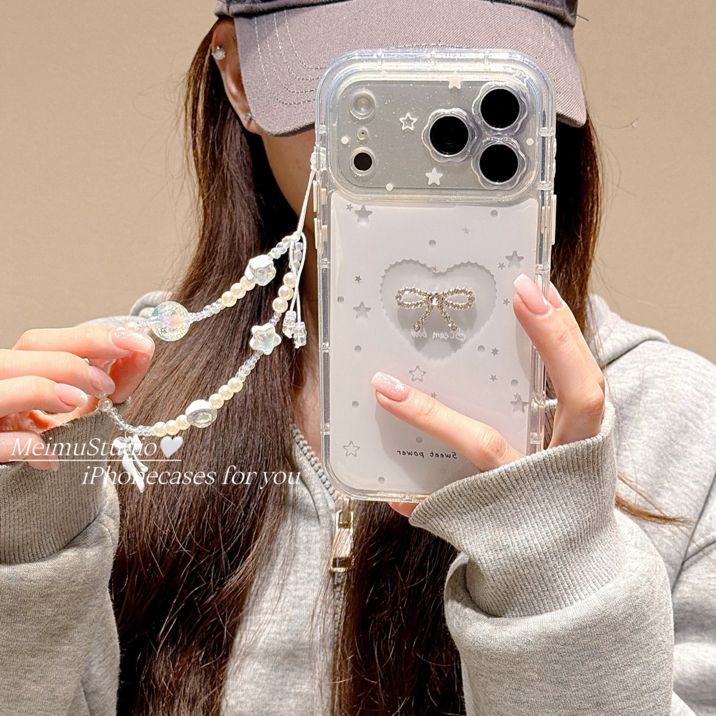 美牧ins简约镂空爱心点钻蝴蝶结适用苹果17promax手机壳iphone16新款15带链条17韩风14pm少女13气质16pro全包