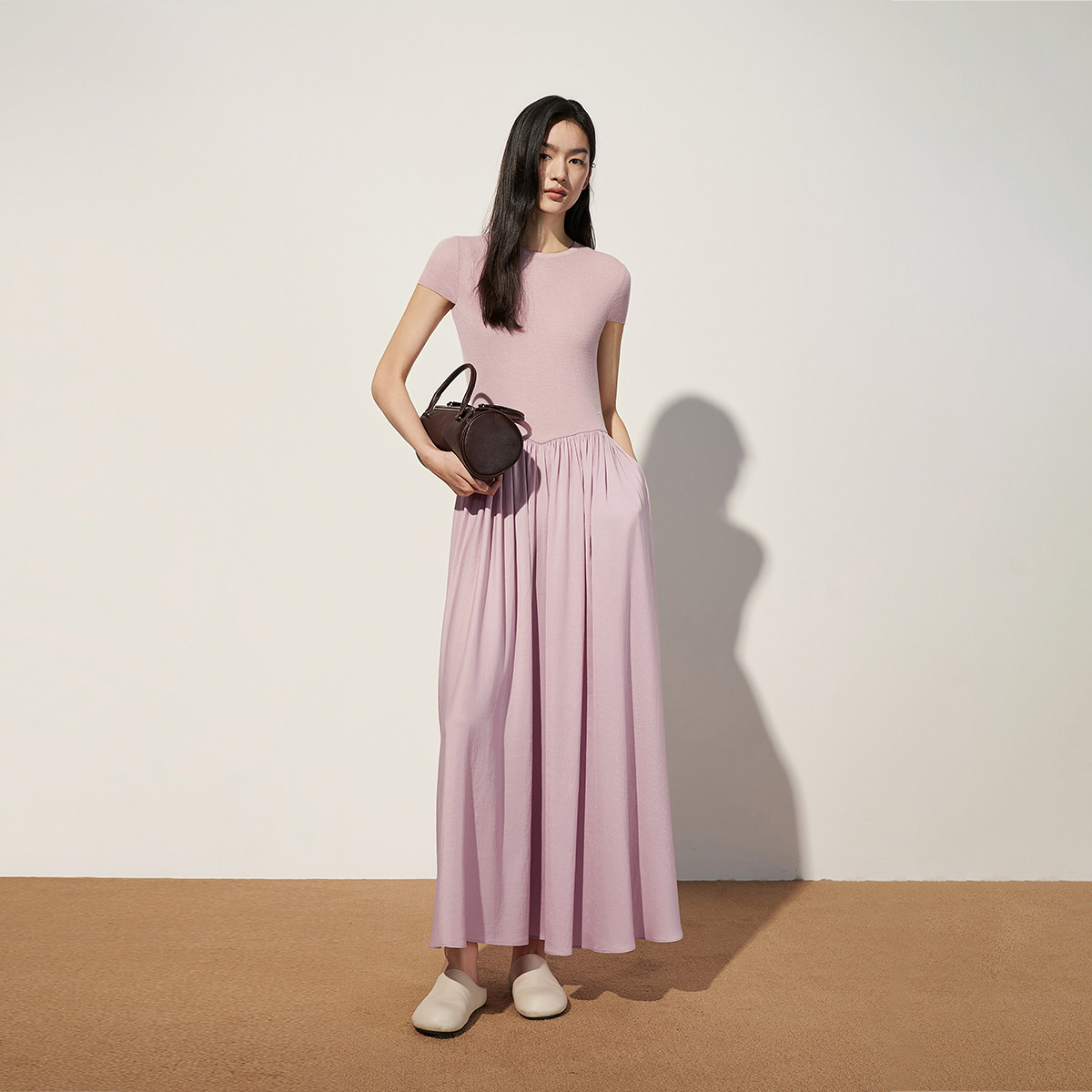 OCHIRLY欧时力 微透假两件短袖连衣裙裙子长裙大摆伞裙春
