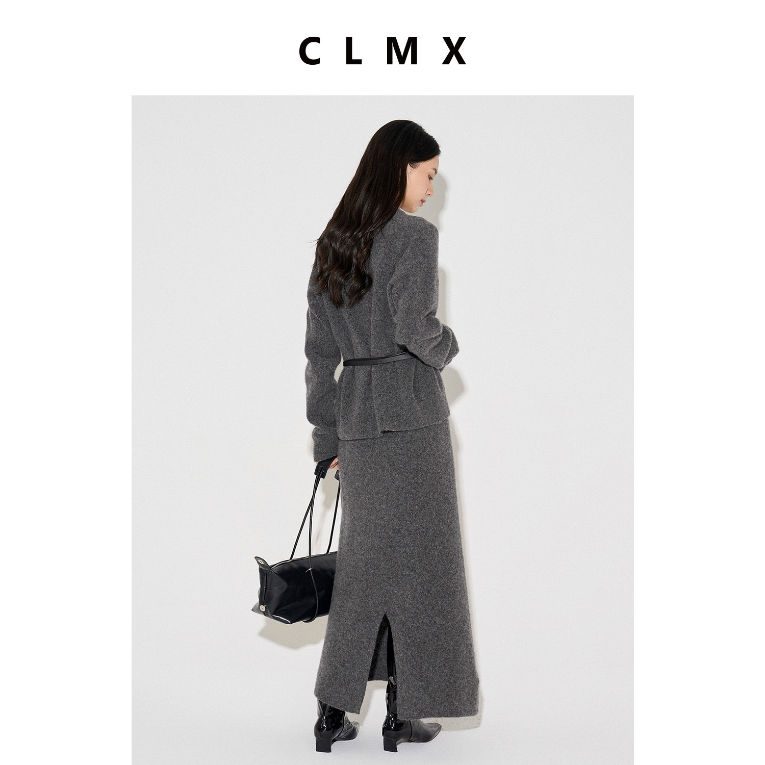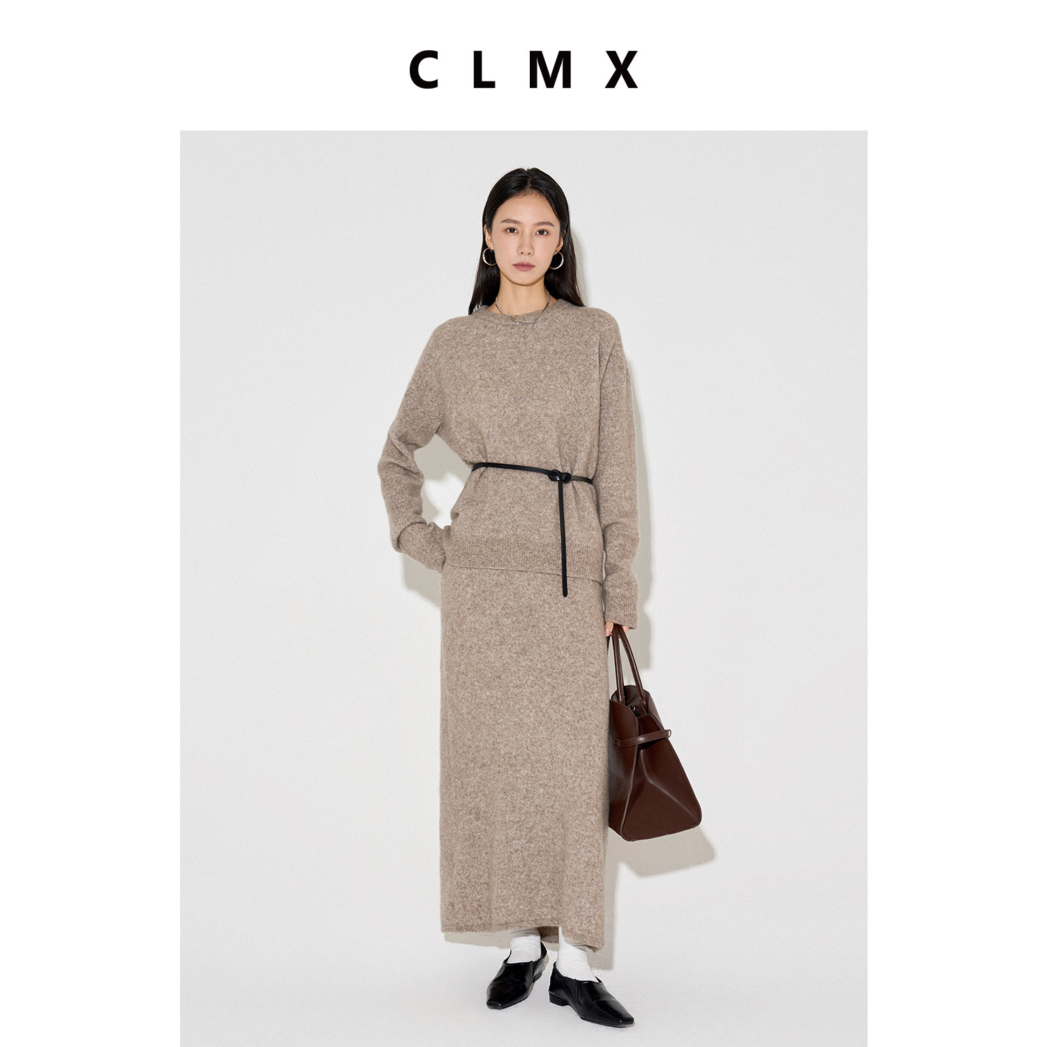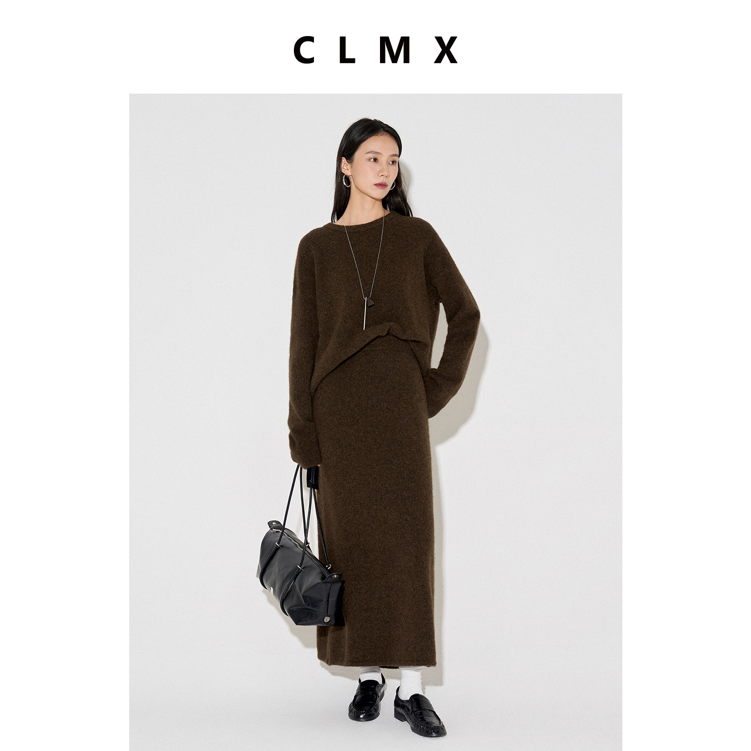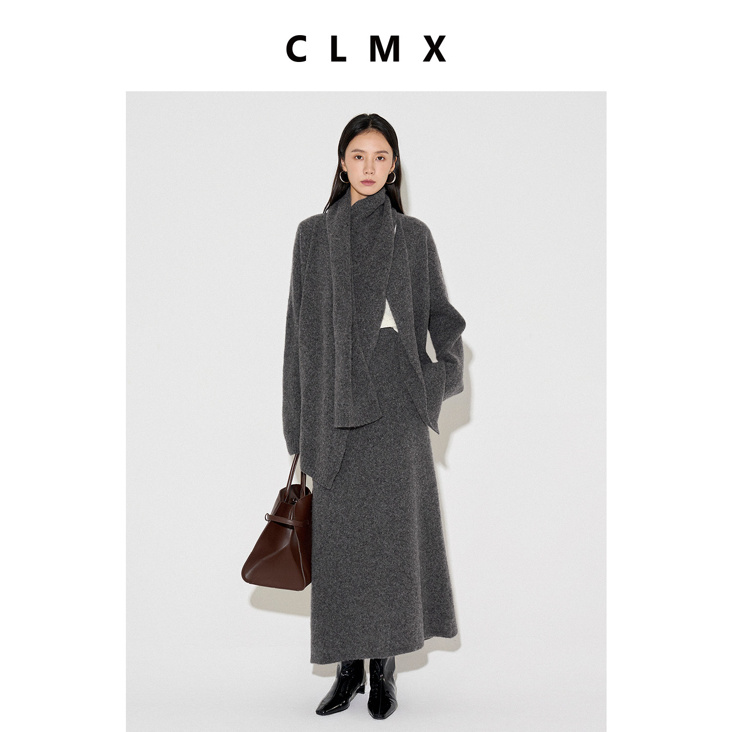CLMX绵羊毛耗牛绒围巾针织开衫上衣女春季高级长款半身裙子套装